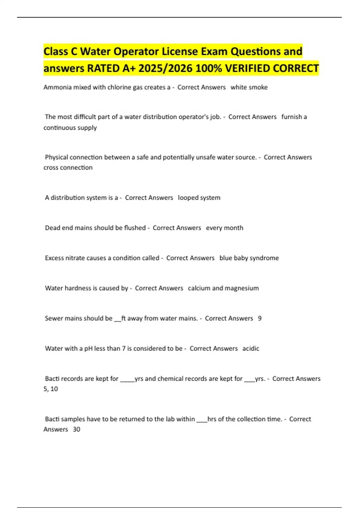 Sewer mains should be __) away from water mains. - Correct Answers 9