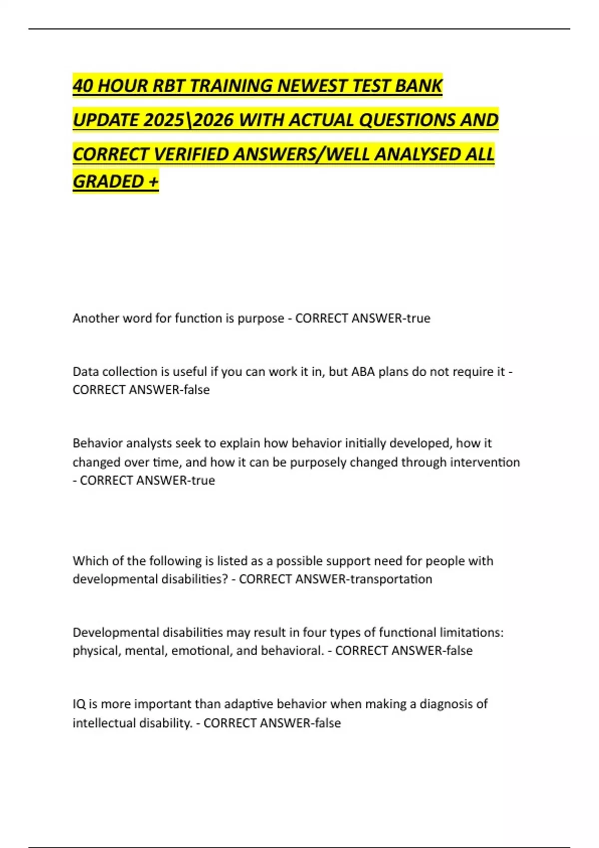 40 HOUR RBT TRAINING NEWEST TEST BANK