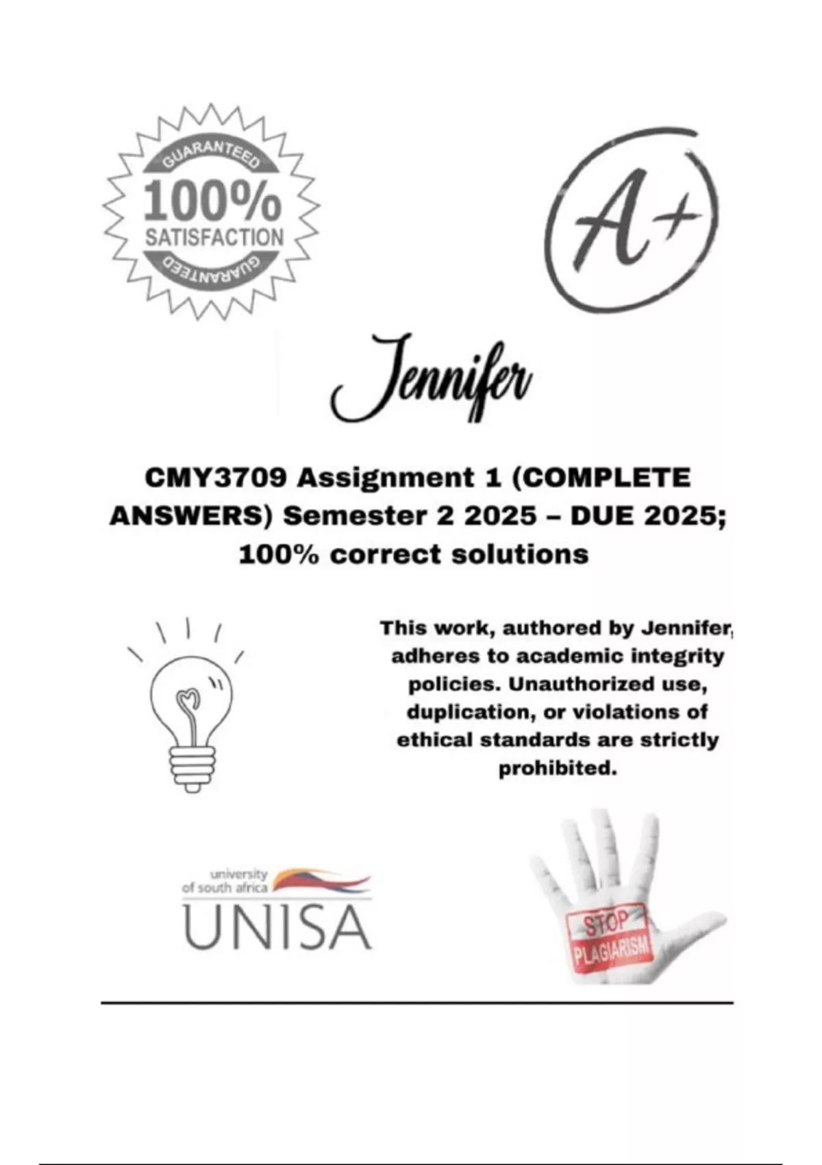 CMY3709 Assignment 1 (COMPLETE ANSWERS) Semester 2 2025 – DUE 2025; 100% correct solutions and explanations.