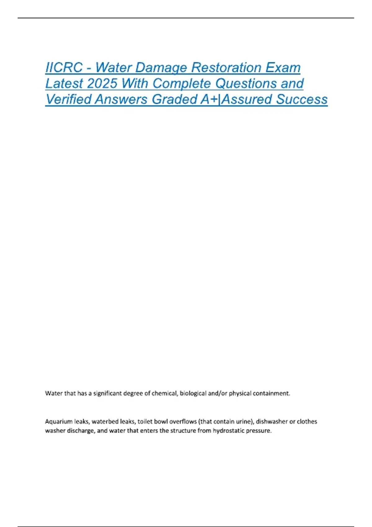 IICRC - Water Damage Restoration Exam Latest 2025 With Complete Questions and Verified Answers Graded A+|Assured Success IICRC - Water Damage Restoration Exam Latest 2025 With Complete Questions and Verified Answers Graded A+|Assured Success