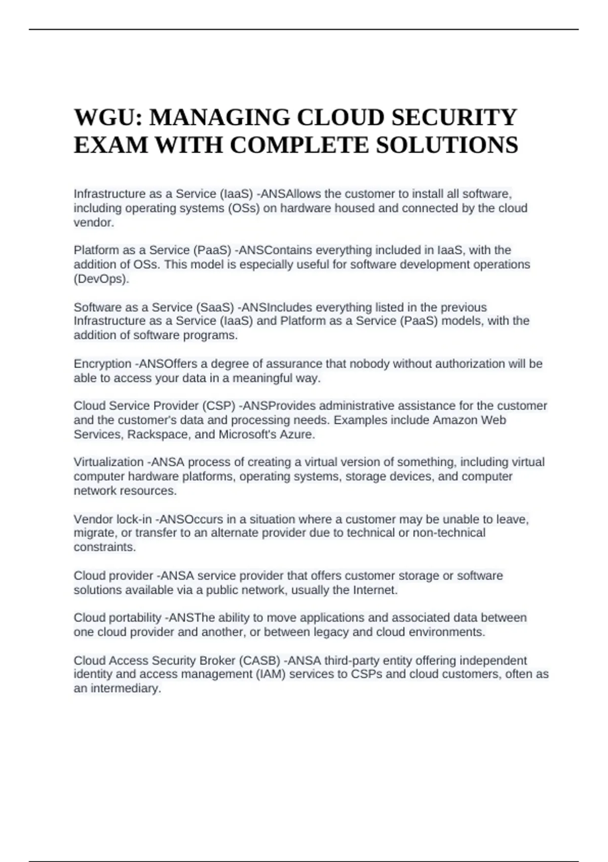 WGU: MANAGING CLOUD SECURITY