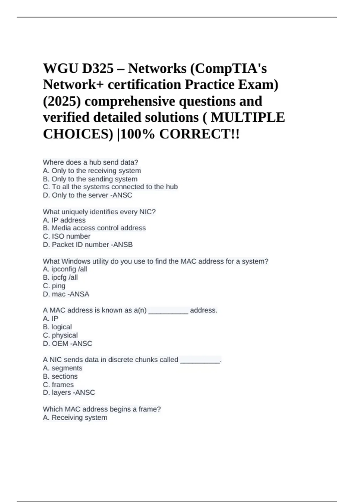 Exam of 28 pages for the course WGU D325 at WGU D325 (WGU D325 - Networks)