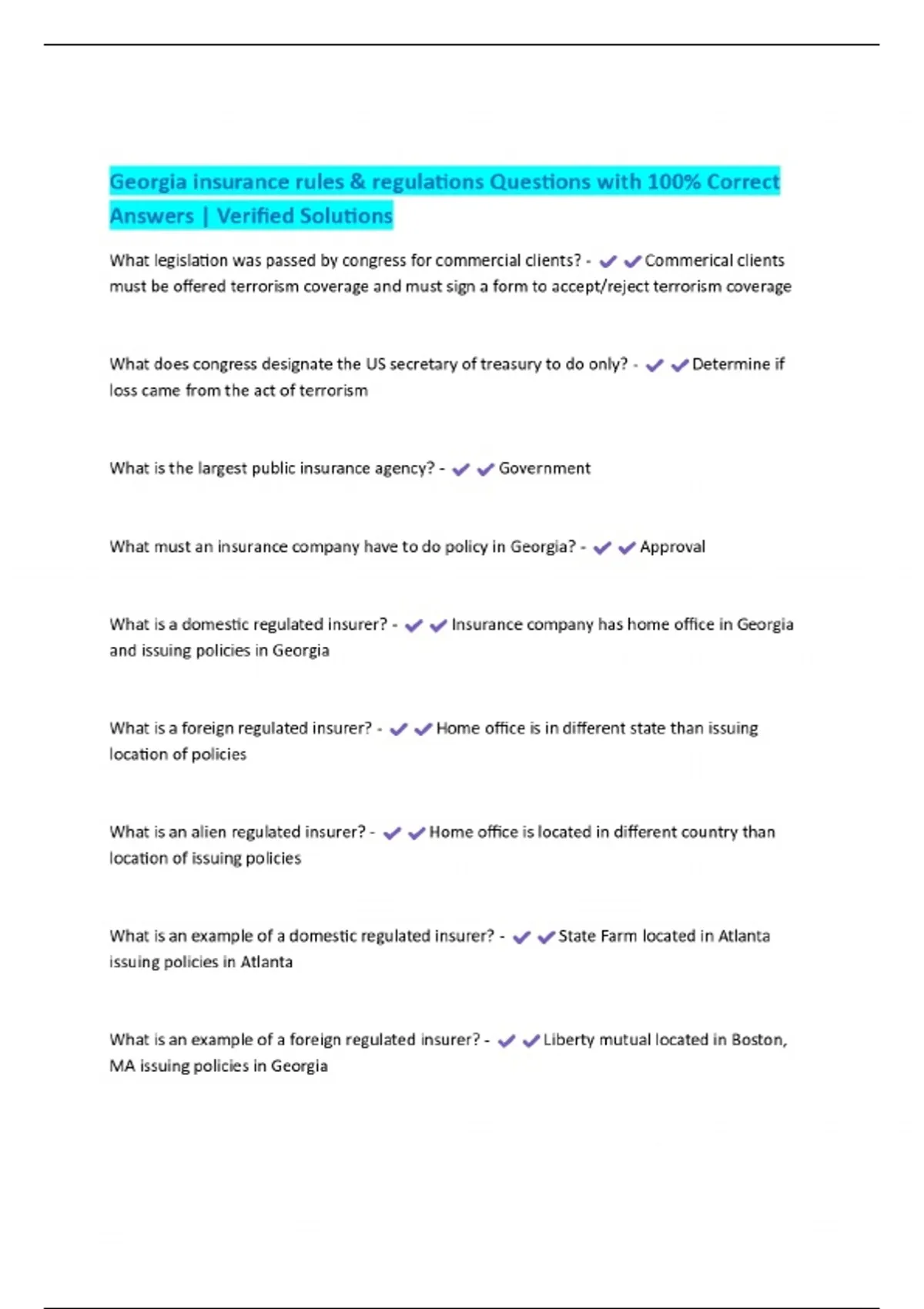 Georgia insurance rules & regulations Questions with 100% Correct Answers | Verified Solutions