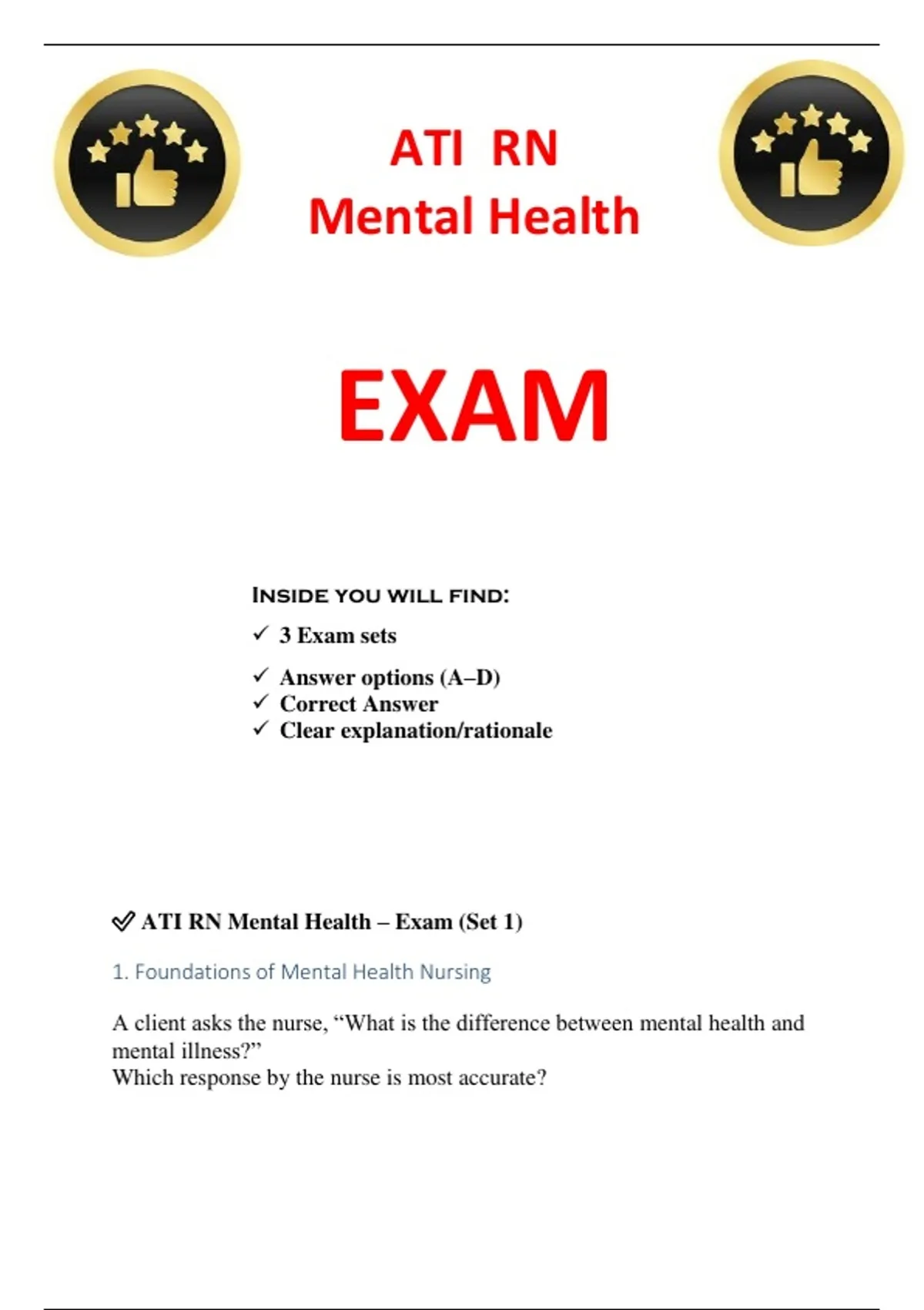 ✅ ATI RN Mental Health – Exam (Set 1)
