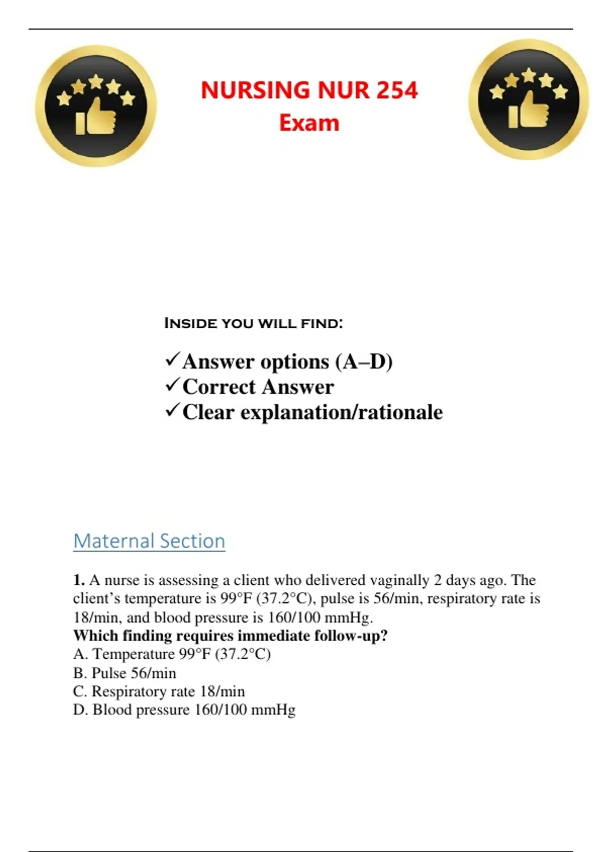 1. A nurse is assessing a client who delivered vaginally 2 days ago. The