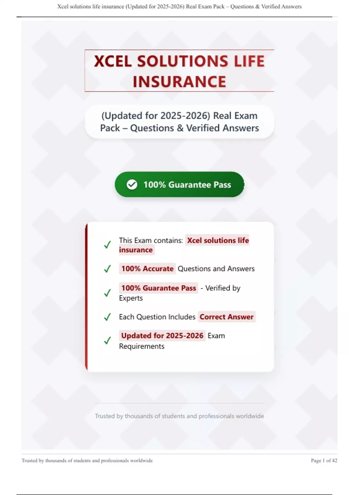 Xcel Solutions Life Insurance (Updated for 2025–2026) Real Exam Pack – Questions & Verified Answers