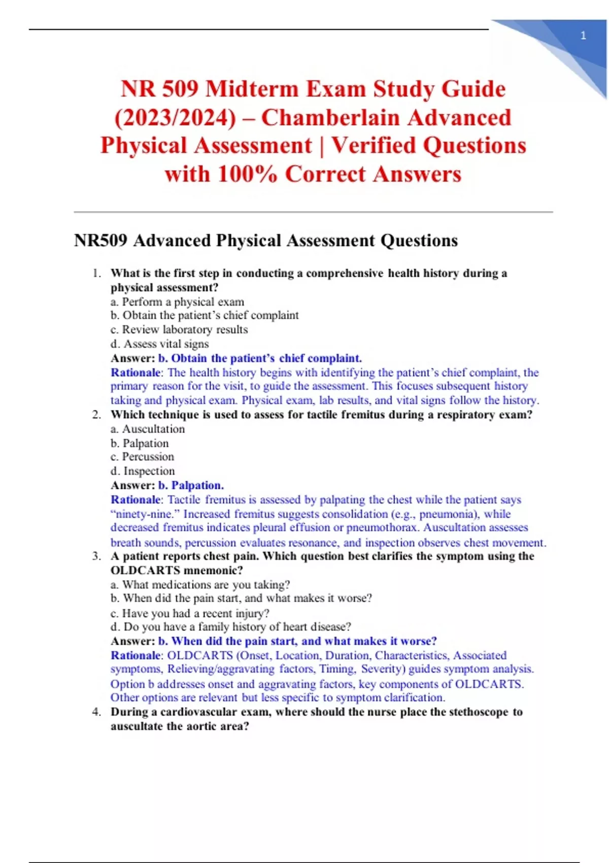 Physical Assessment | Verified Questions