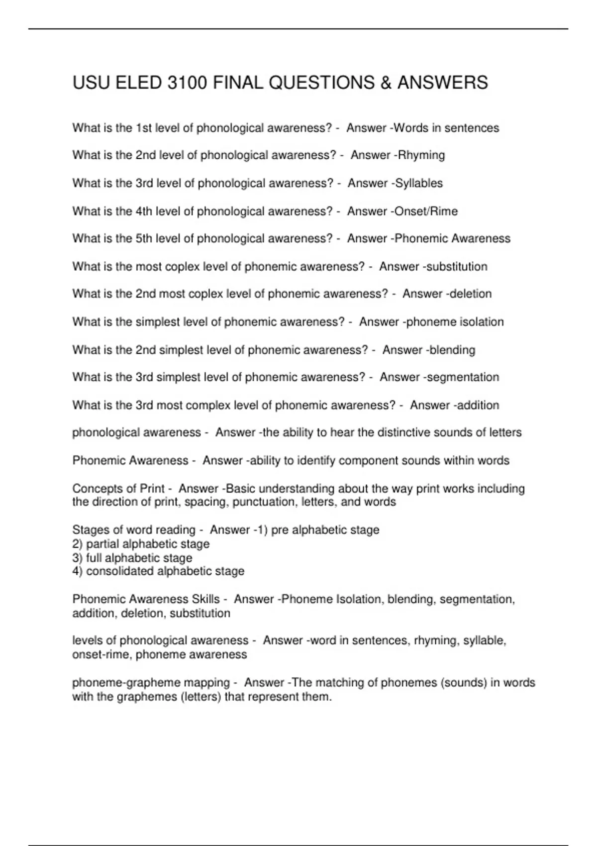 USU ELED 3100 FINAL QUESTIONS & ANSWERS