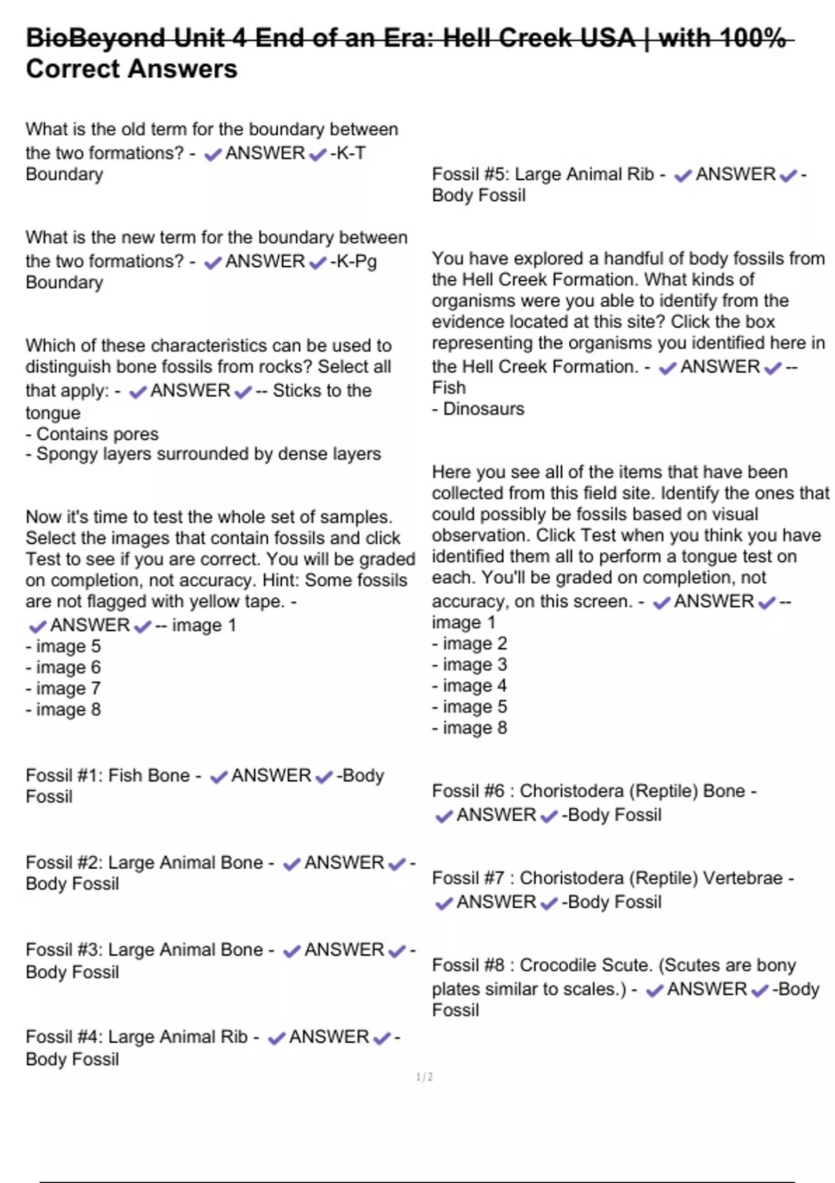 BioBeyond Unit 4 End of an Era: Hell Creek USA | with 100% Correct Answers