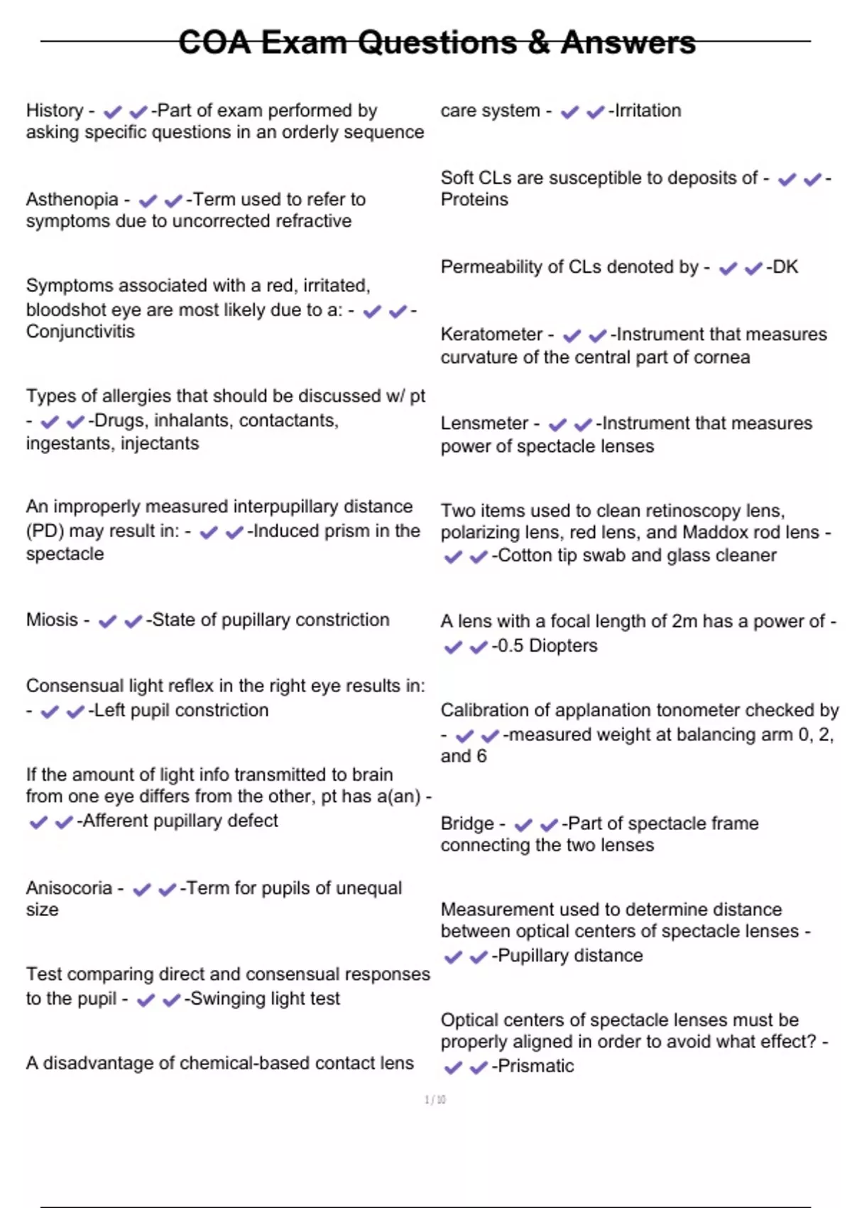 , COA Exam Questions & Answers