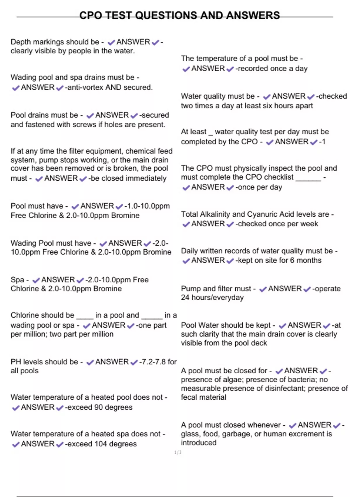 Water quality must be - ANSWER -checked