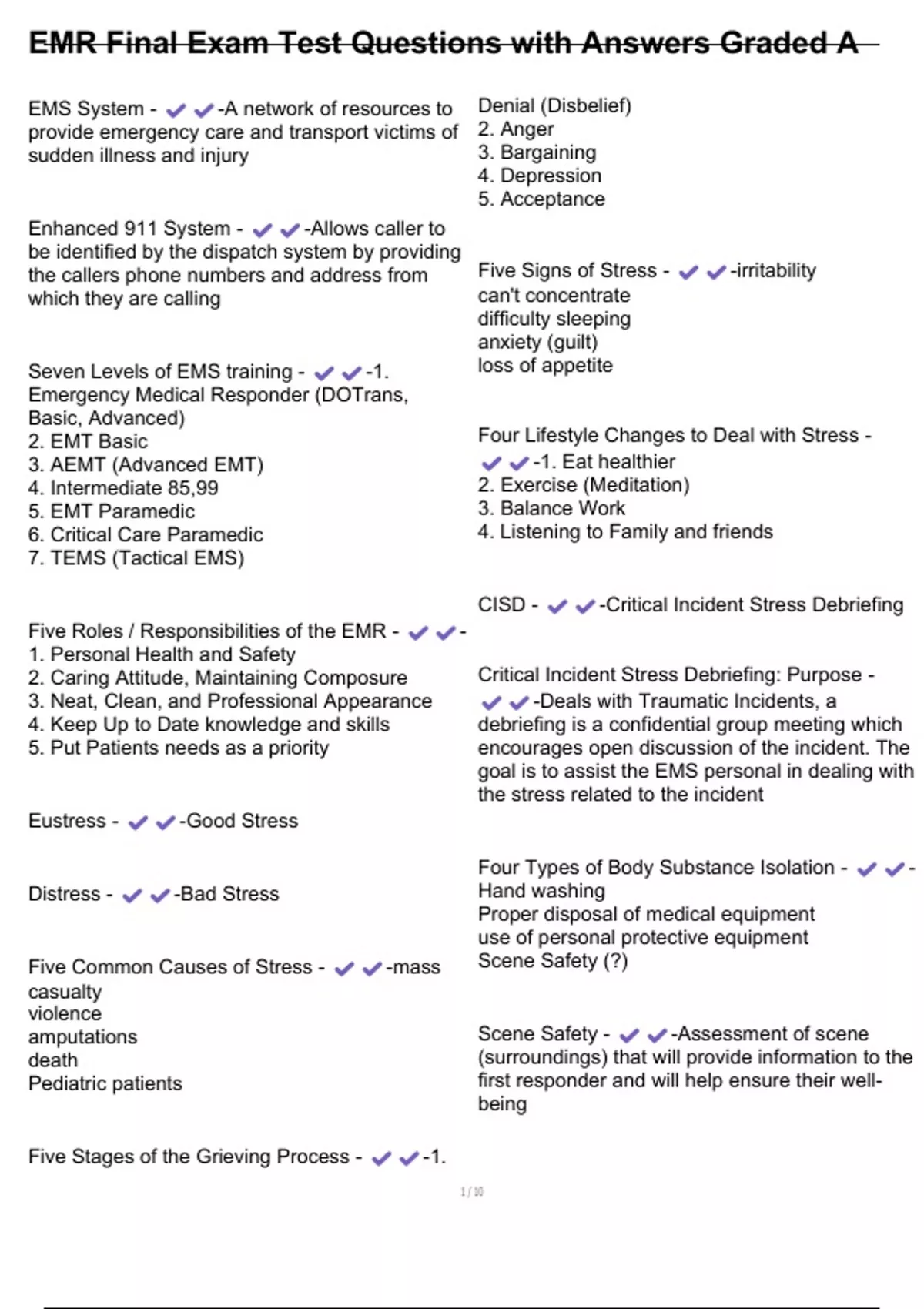 EMR Final Exam Test Questions with Answers Graded A