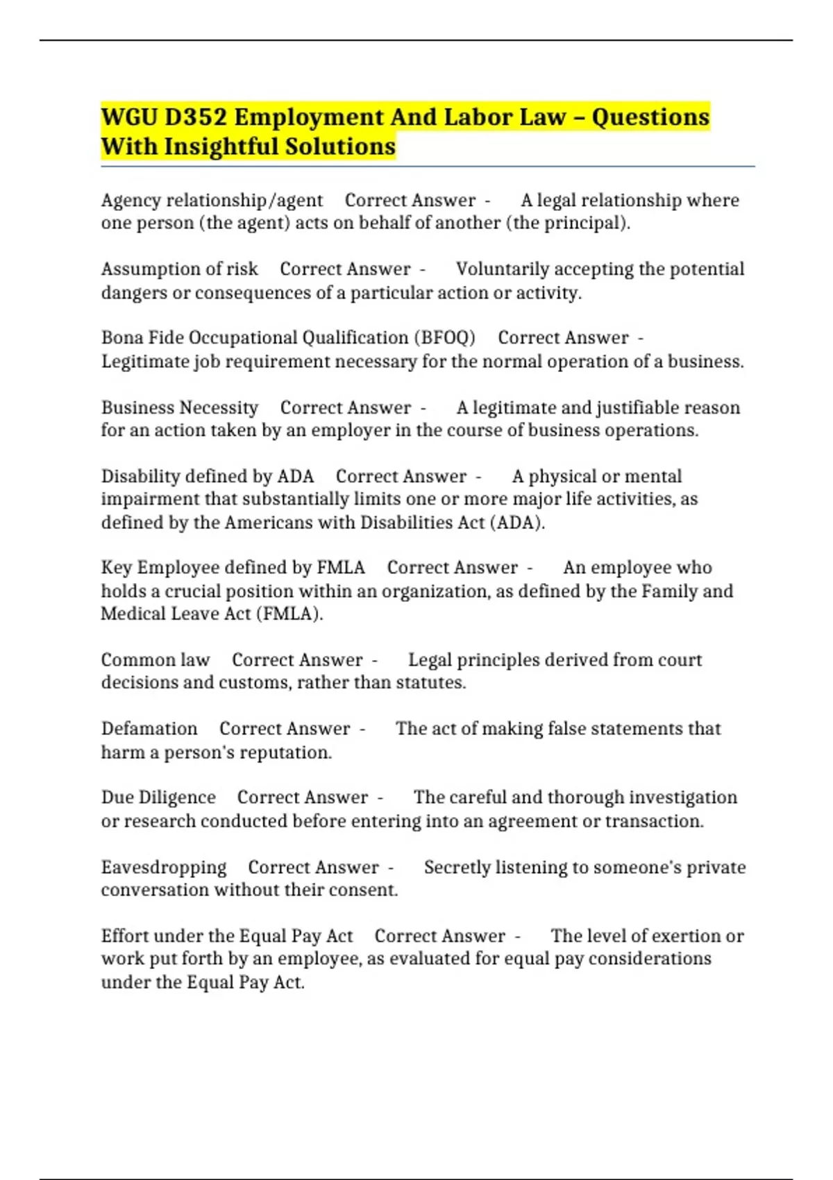 WGU D352 Employment And Labor Law – Questions With Insightful Solutions