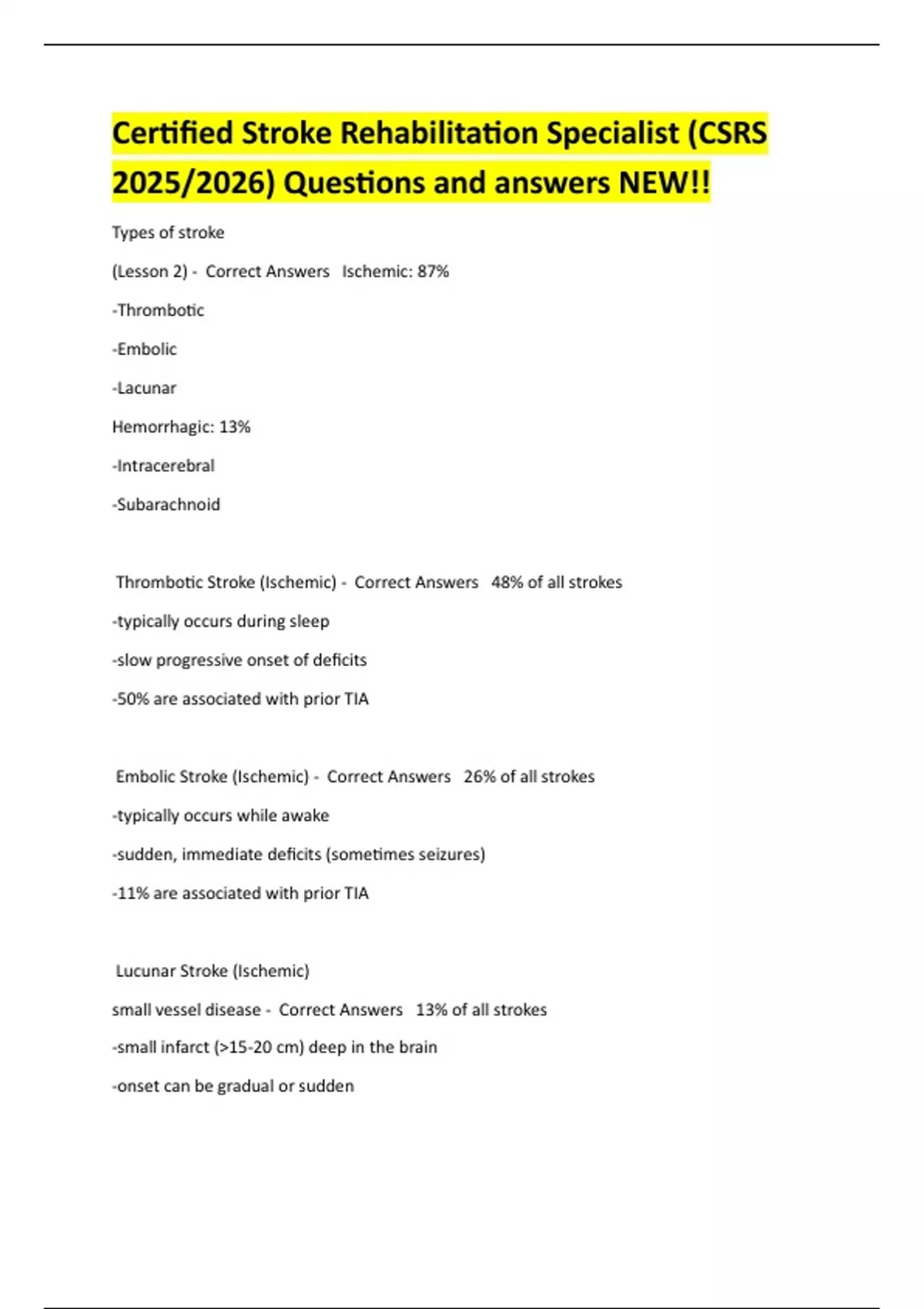 Thrombo c Stroke (Ischemic) - Correct Answers 48% of all strokes