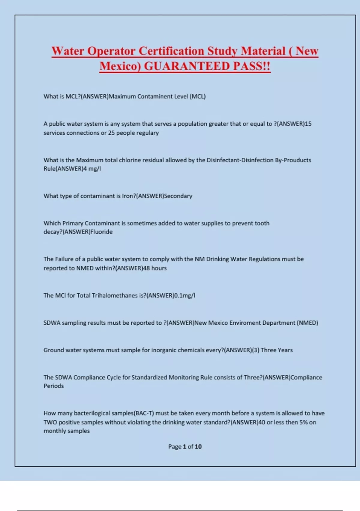 Water Operator Certification Study Material ( New Mexico) GUARANTEED PASS!! Water Operator Certification Study Material ( New Mexico) GUARANTEED PASS!!