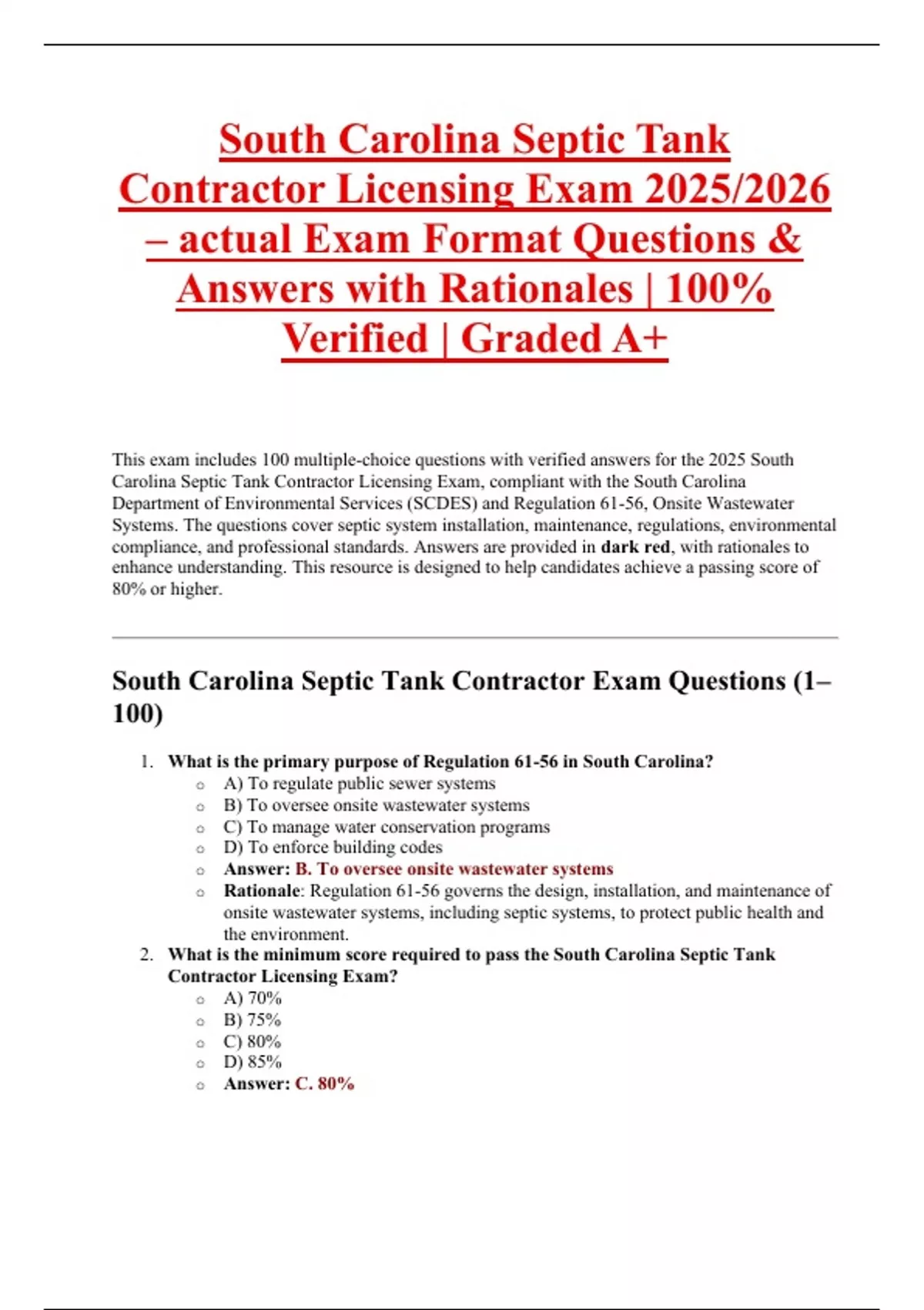 Carolina Septic Tank Contractor Licensing Exam, compliant with the South Carolina