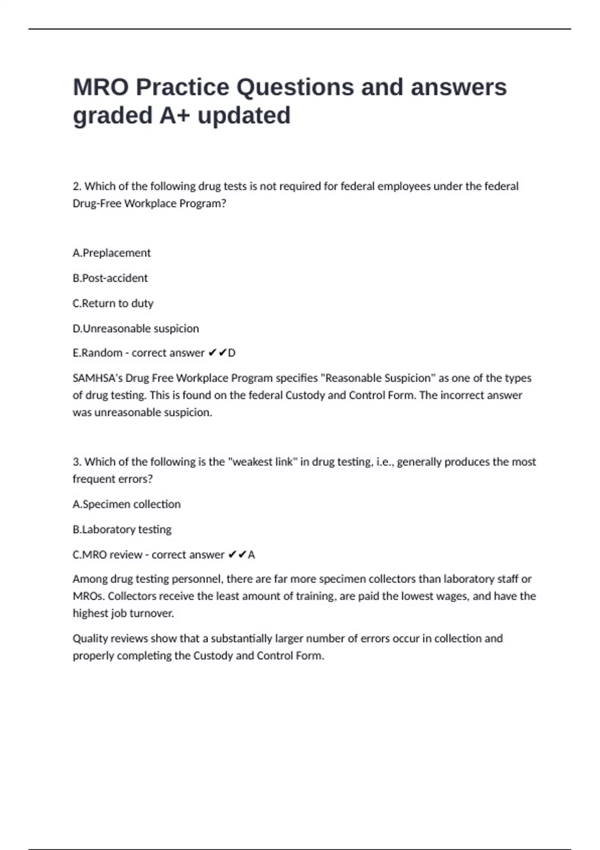 A. All MRO work - Incorrect: includes non-federally regulated drug testing, in which only a