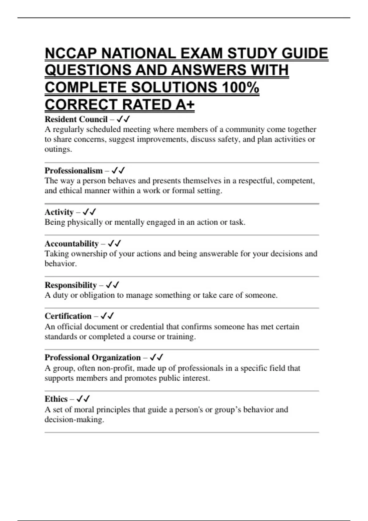 NCCAP NATIONAL EXAM STUDY GUIDE QUESTIONS AND ANSWERS WITH COMPLETE SOLUTIONS 100% CORRECT RATED A+