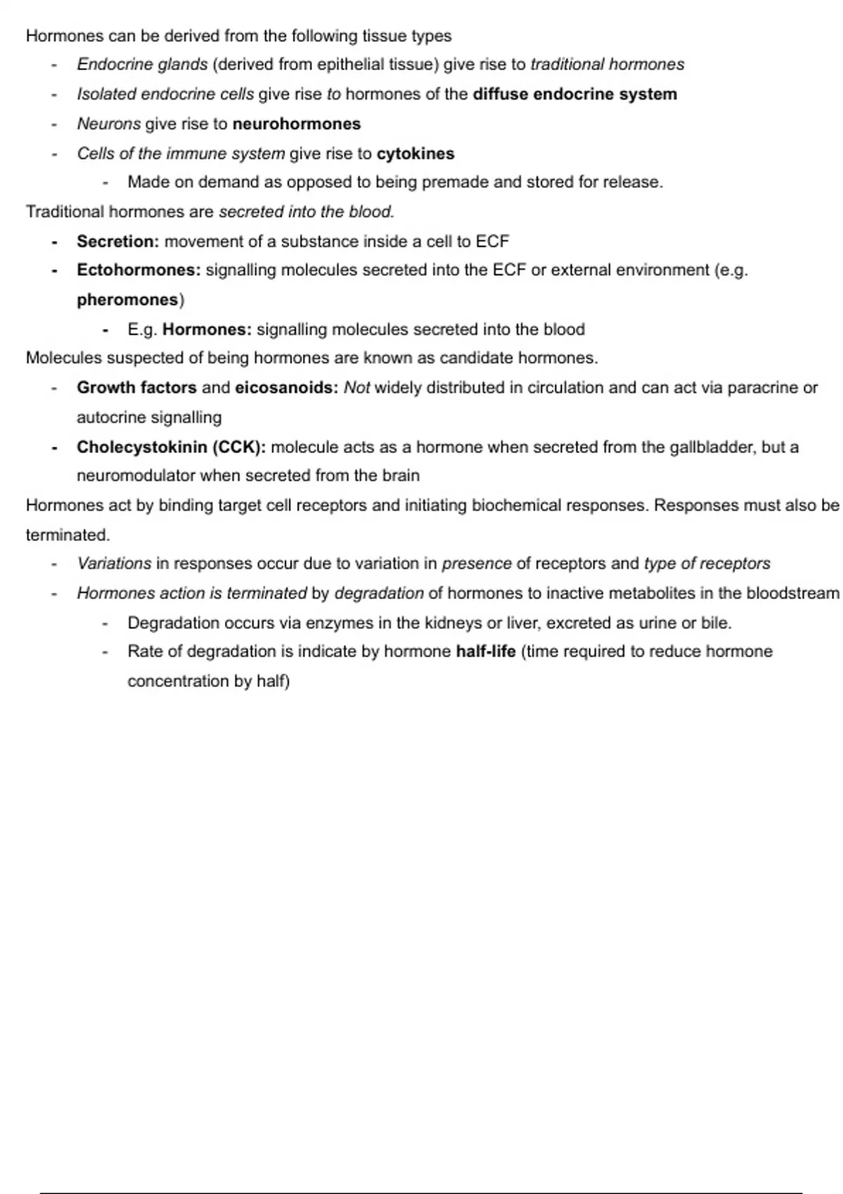 -​ Ectohormones: signalling molecules secreted into the ECF or external environment (e.g.