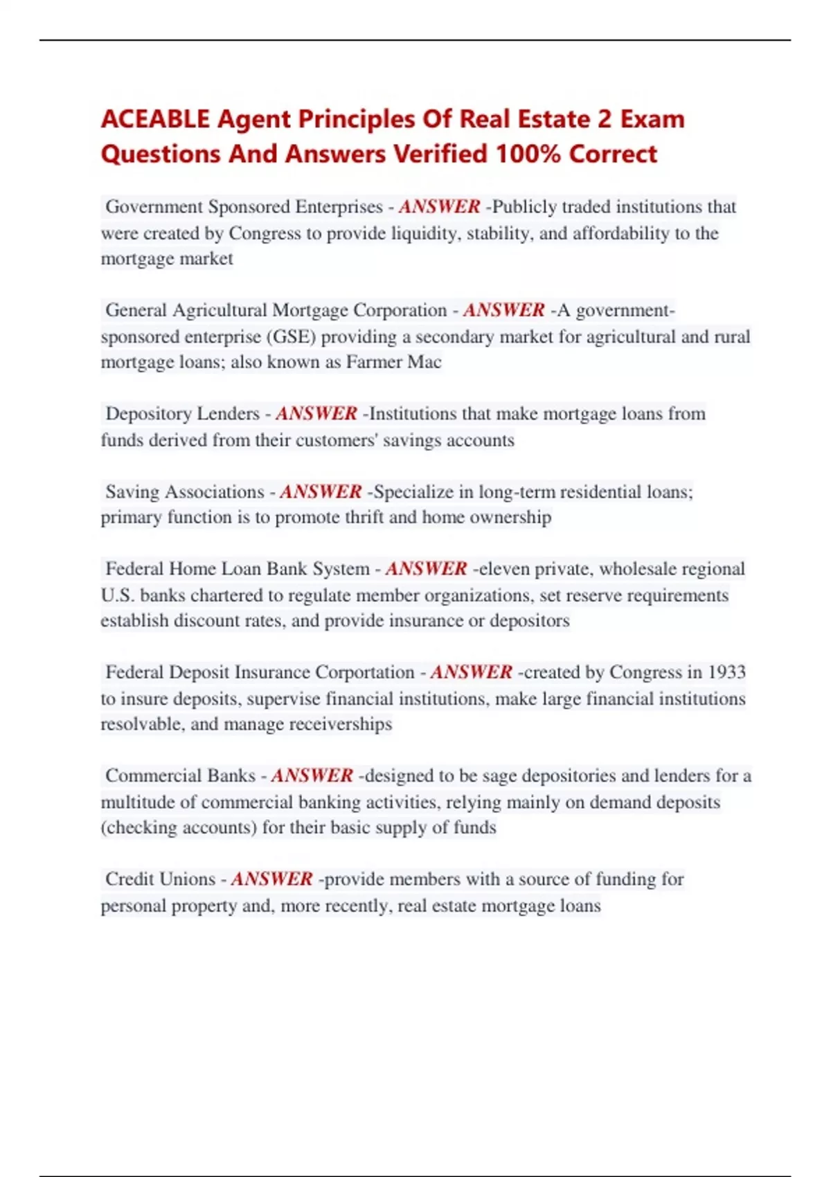 Depository Lenders - ANSWER -Institutions that make mortgage loans from
