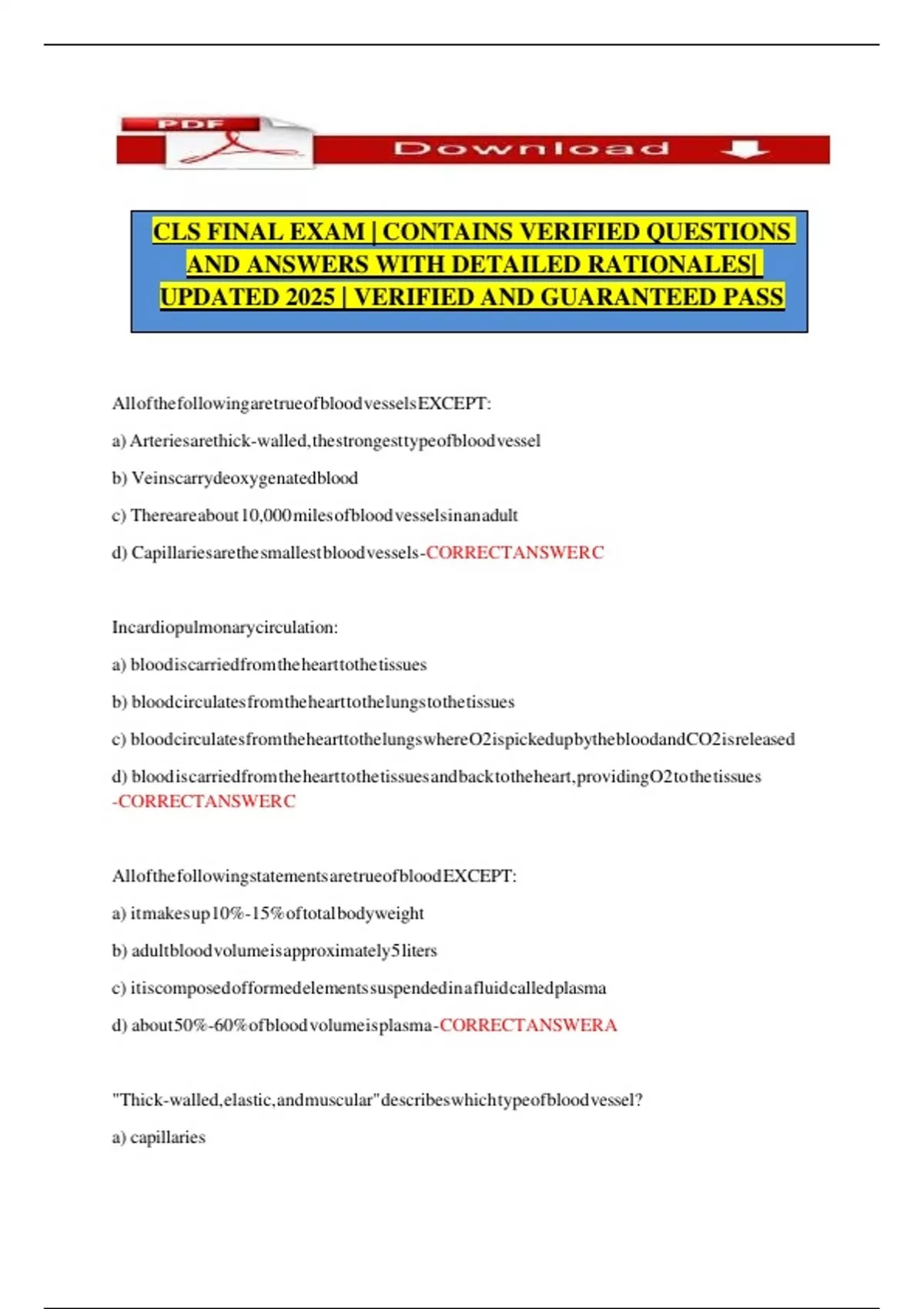 CLS FINAL EXAM | CONTAINS VERIFIED QUESTIONS
