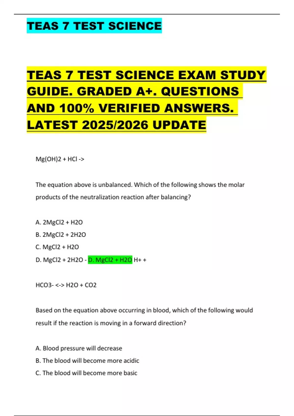 TEAS 7 TEST SCIENCE EXAM STUDY GUIDE. GRADED A+. QUESTIONS AND 100% VERIFIED ANSWERS. LATEST 2025/2026 UPDATE TEAS 7 TEST SCIENCE EXAM STUDY GUIDE. GRADED A+. QUESTIONS AND 100% VERIFIED ANSWERS. LATEST 2025/2026 UPDATE TEAS 7 TEST SCIENCE EXAM STUDY GUIDE. GRADED A+. QUESTIONS AND 100% VERIFIED ANSWERS. LATEST 2025/2026 UPDATE