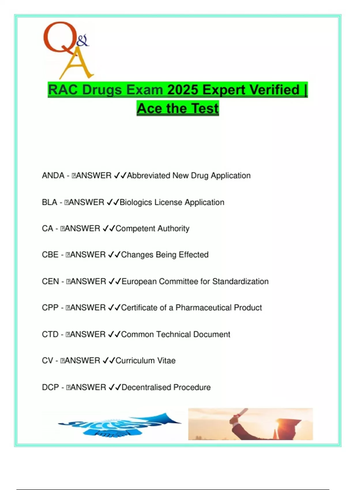 RAC Drugs Exam 2025 Expert Verified | Ace the Test ANDA -