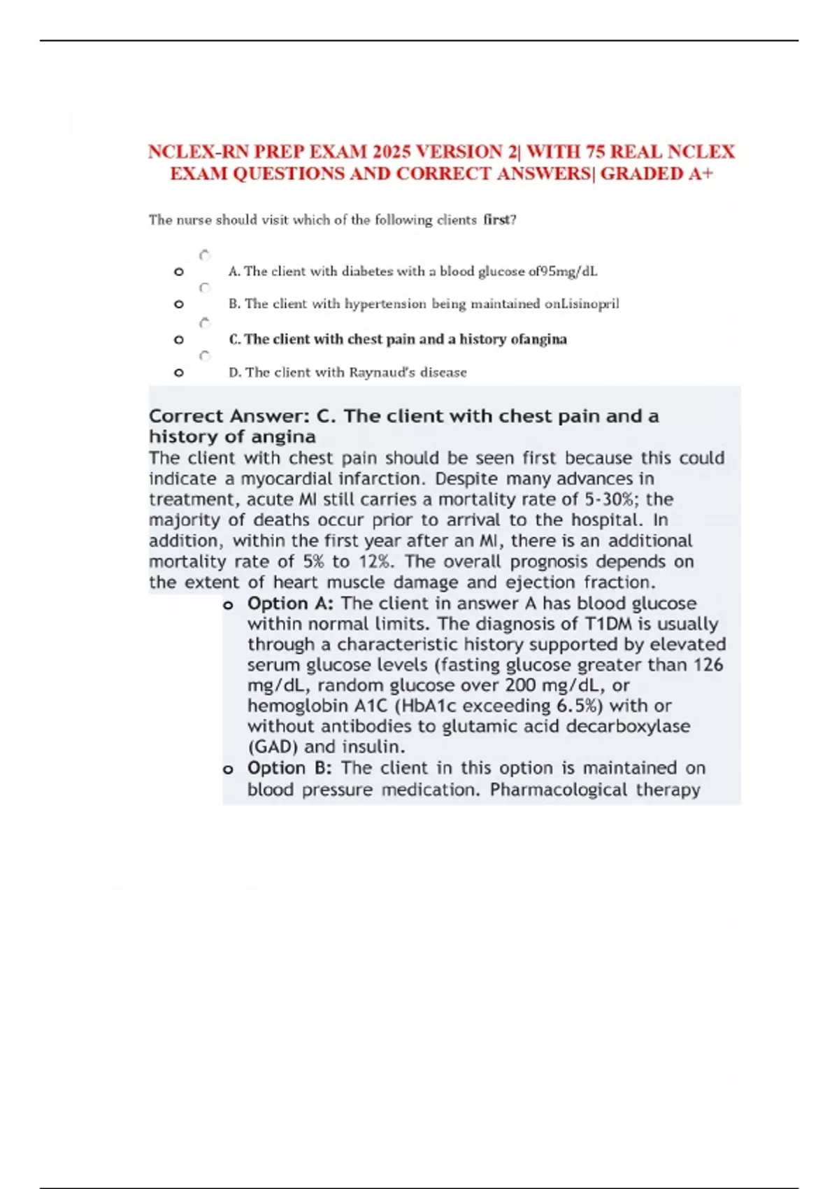 NCLEX-RN PREP EXAM 2025 VERSION 2| WITH 75 REAL NCLEX EXAM QUESTIONS AND CORRECT ANSWERS| GRADED A+