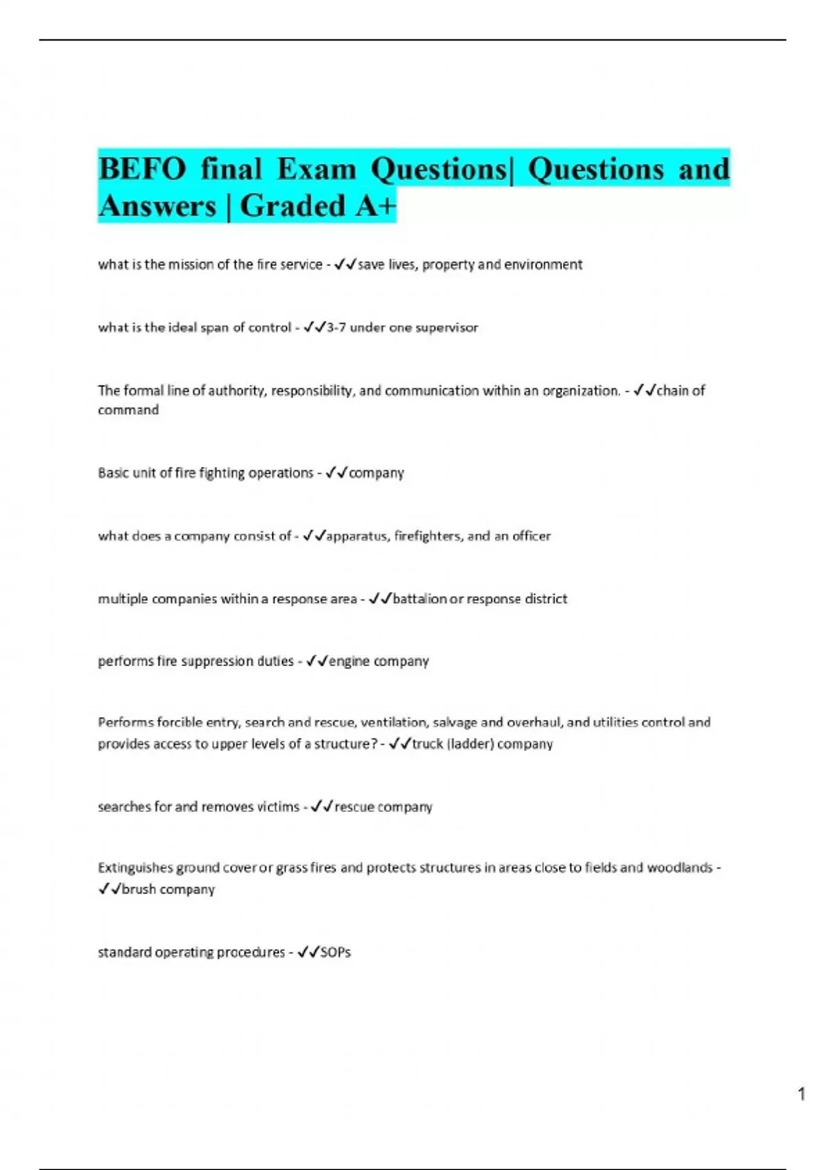 BEFO final Exam Questions| Questions and Answers | Graded A+