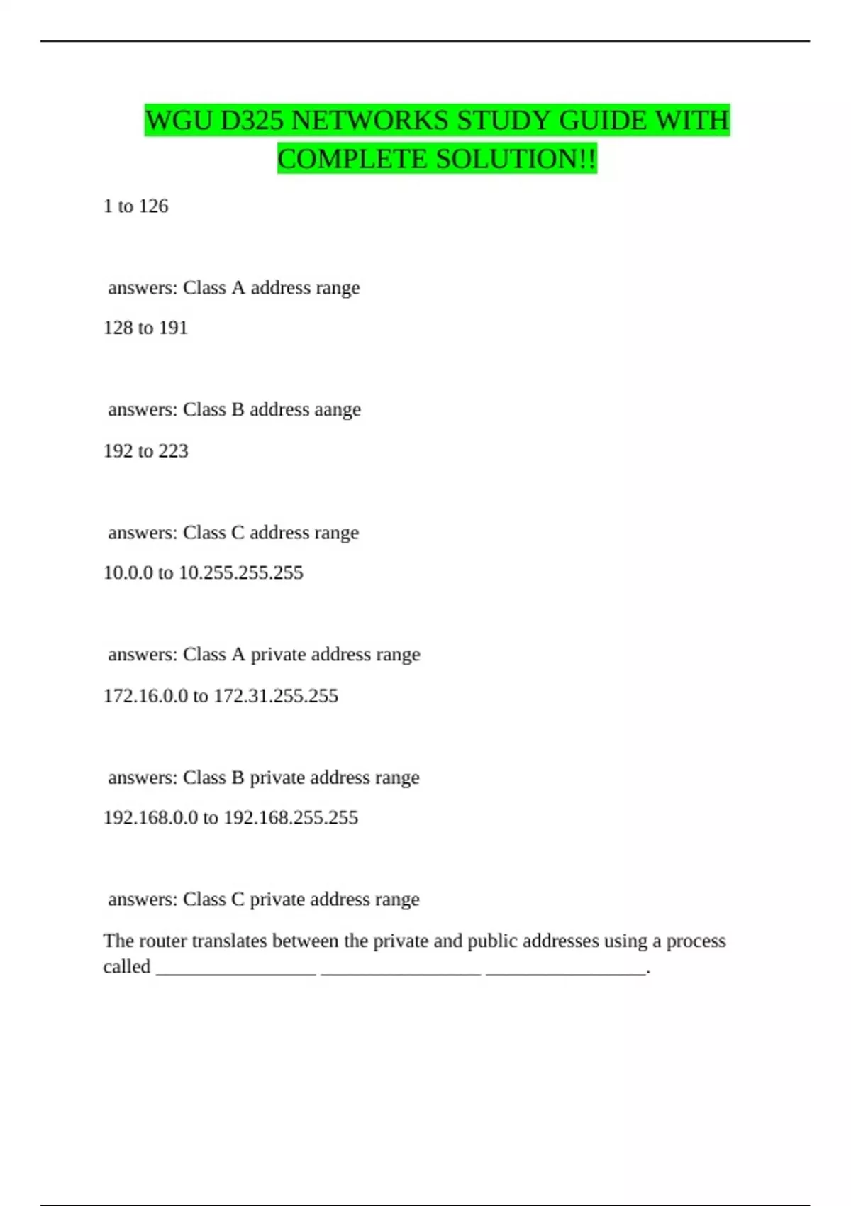 WGU D325 NETWORKS STUDY GUIDE WITH