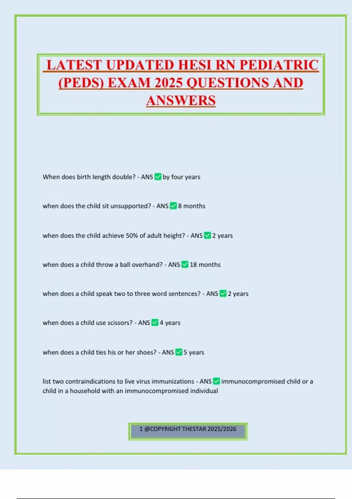 (PEDS) EXAM 2025 QUESTIONS AND