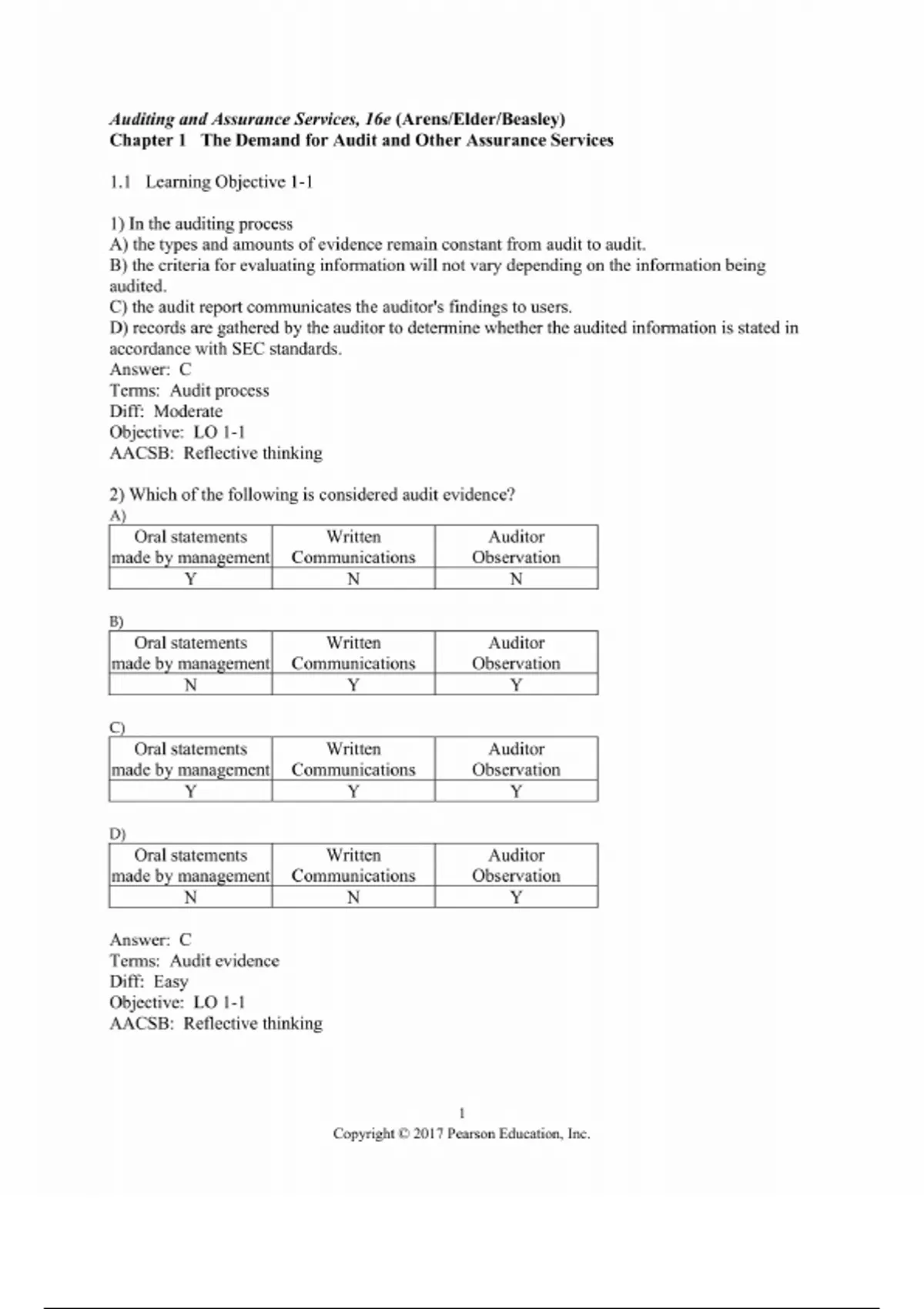 Test Bank for Auditing and Assurance Services, 16th Edition By Alvin A. Arens, Randal J. Elder, Mark S. Beasley, Chris E. Hogan,All Chapters Fully Covered With Verified Questions and Answers | 100% pass assured