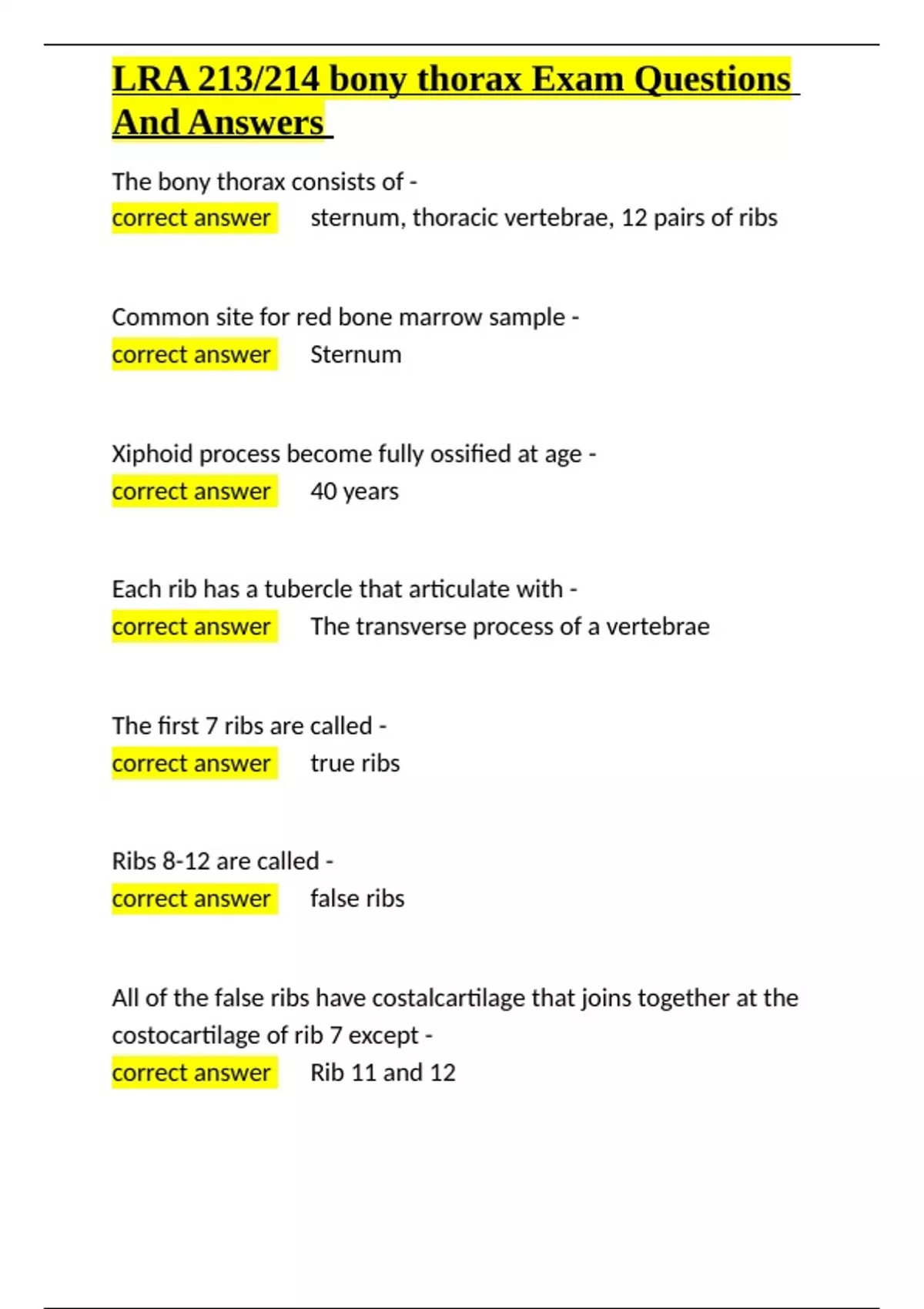 , LRA 213/214 bony thorax Exam Questions