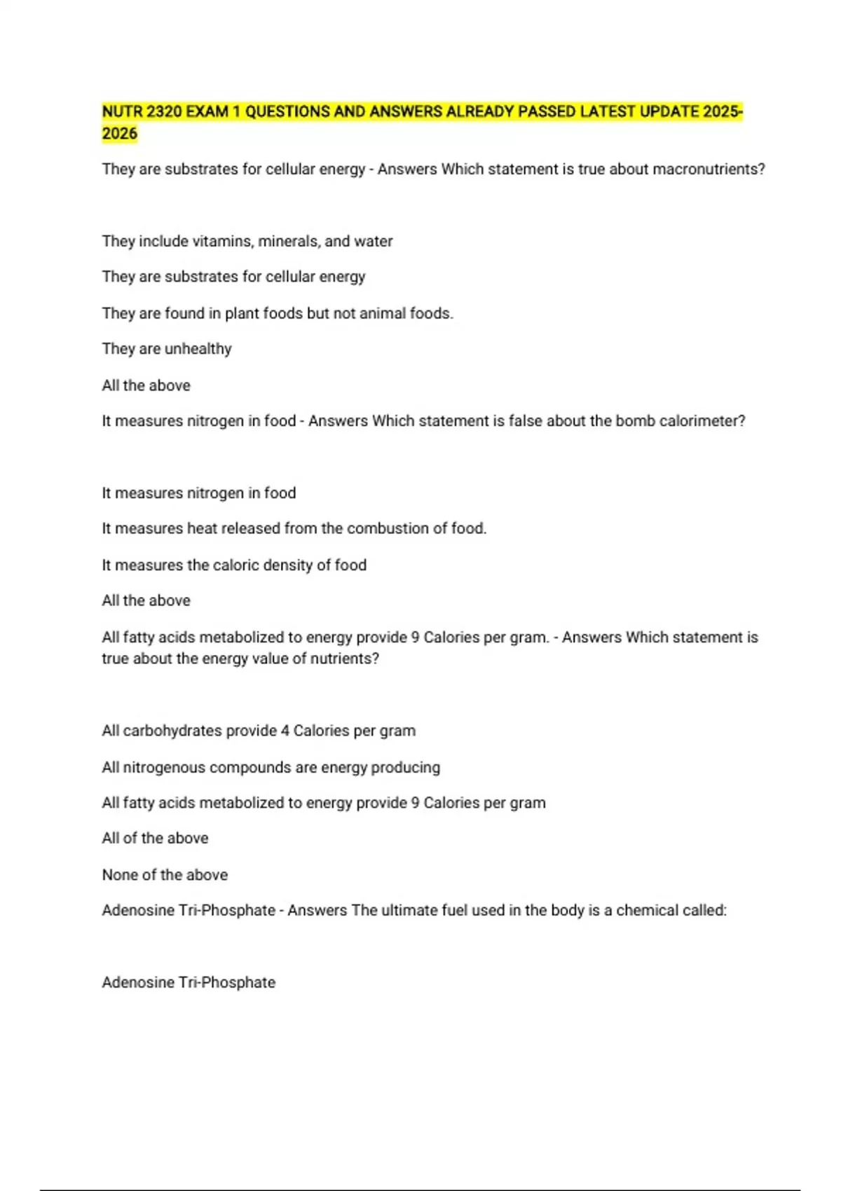 All fatty acids metabolized to energy provide 9 Calories per gram. - Answers Which statement is