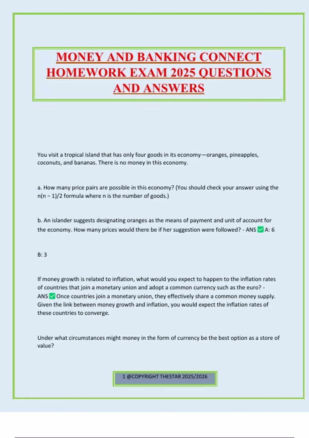 MONEY AND BANKING CONNECT HOMEWORK EXAM 2025 QUESTIONS AND ANSWERS