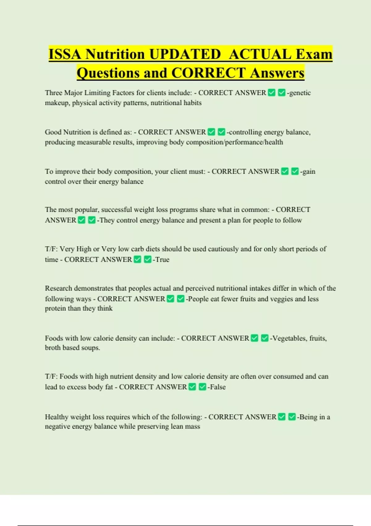 ISSA Nutrition UPDATED ACTUAL Exam Questions and CORRECT Answers