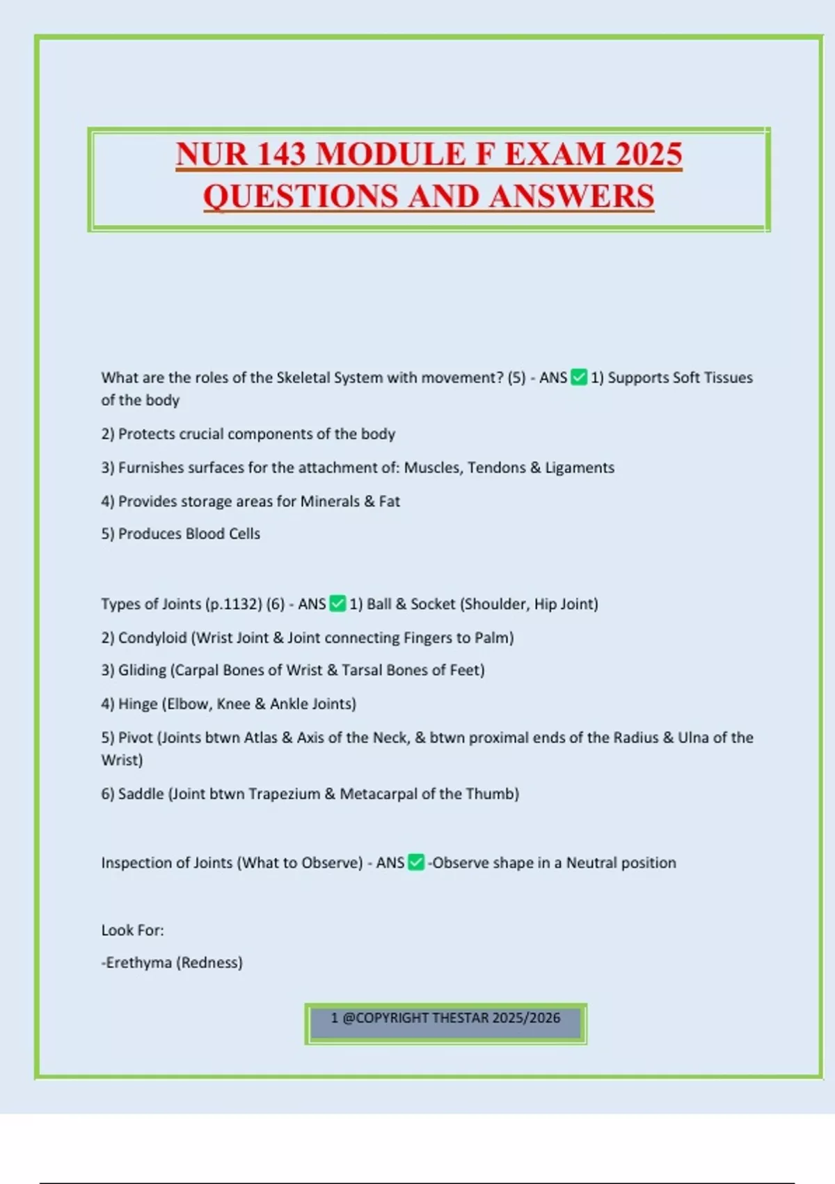 Inspection of Joints (What to Observe) - ANS -Observe shape in a Neutral position