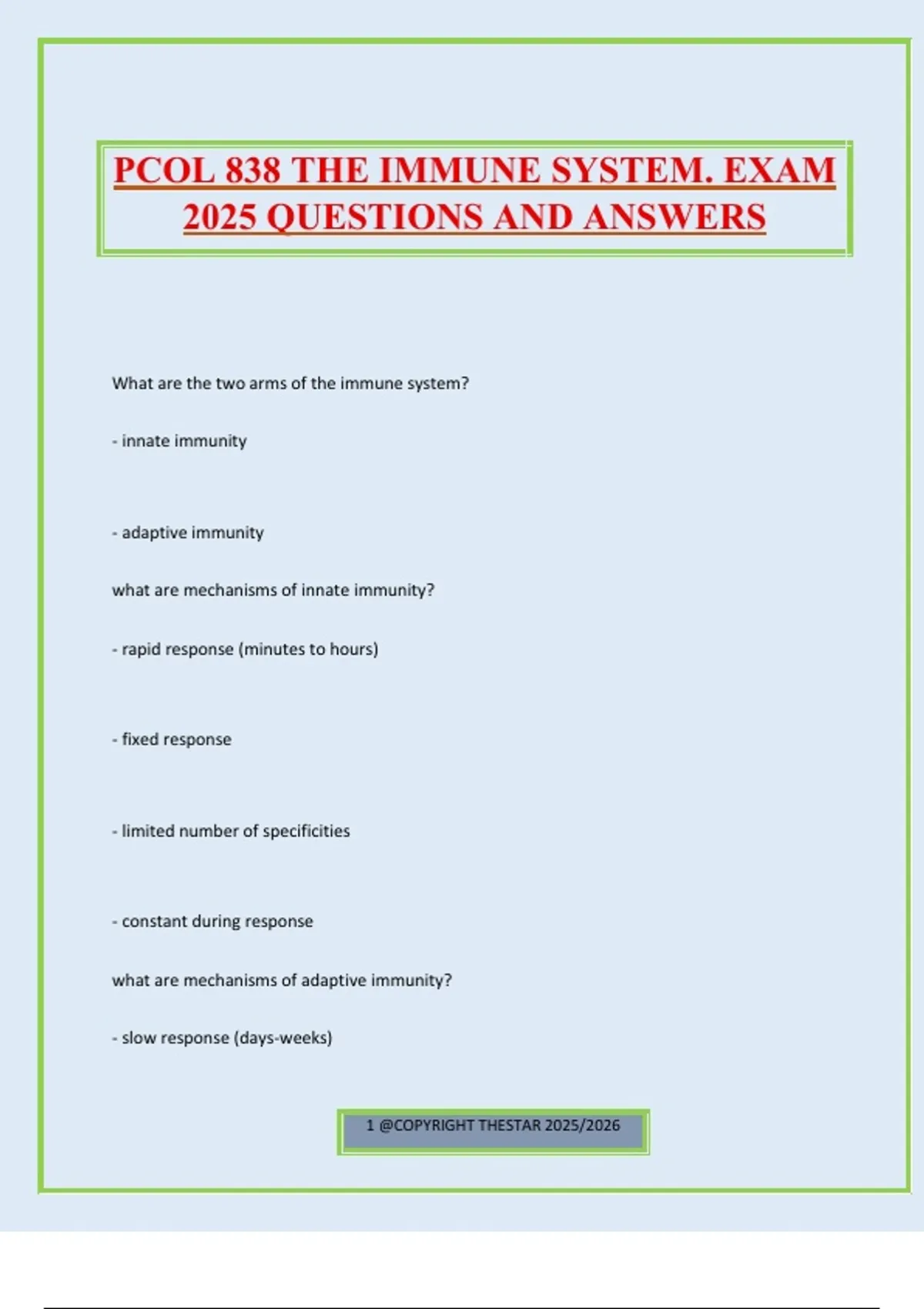 PCOL 838 THE IMMUNE SYSTEM. EXAM 2025 QUESTIONS AND ANSWERS