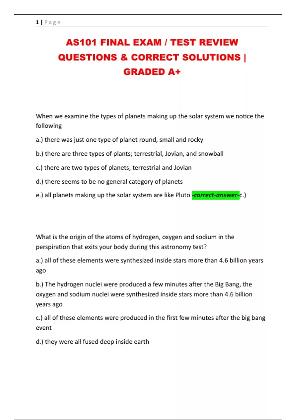 AS101 FINAL EXAM / TEST REVIEW