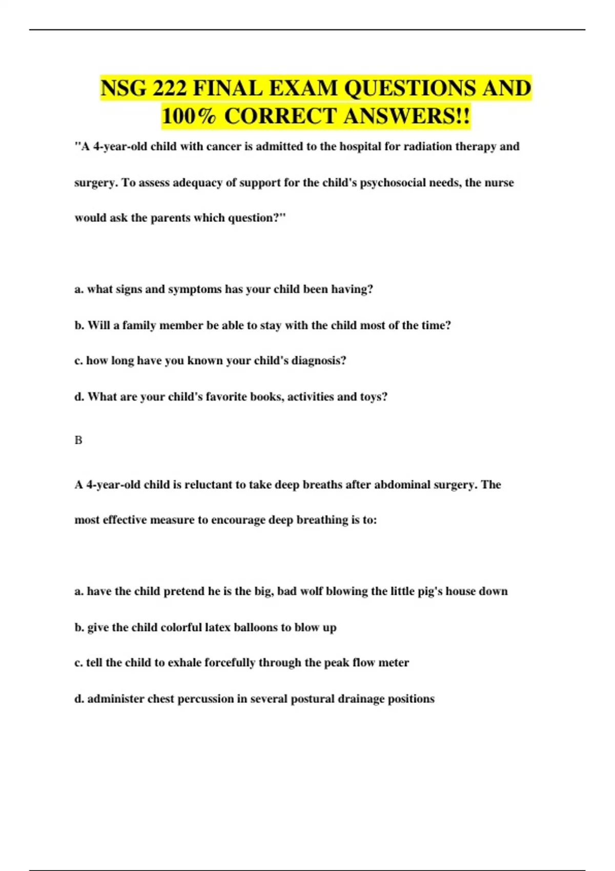 NSG 222 FINAL EXAM QUESTIONS AND