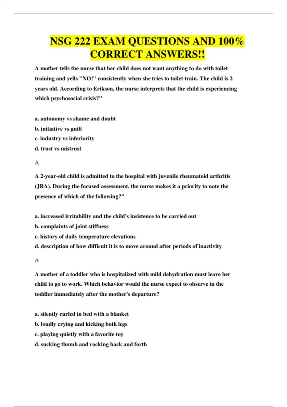 years old. According to Erikson, the nurse interprets that the child is experiencing