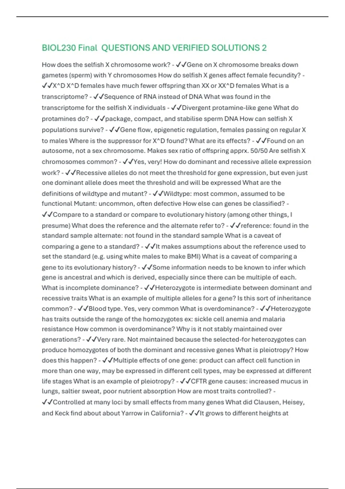 BIOL230 Final QUESTIONS AND VERIFIED SOLUTIONS 2