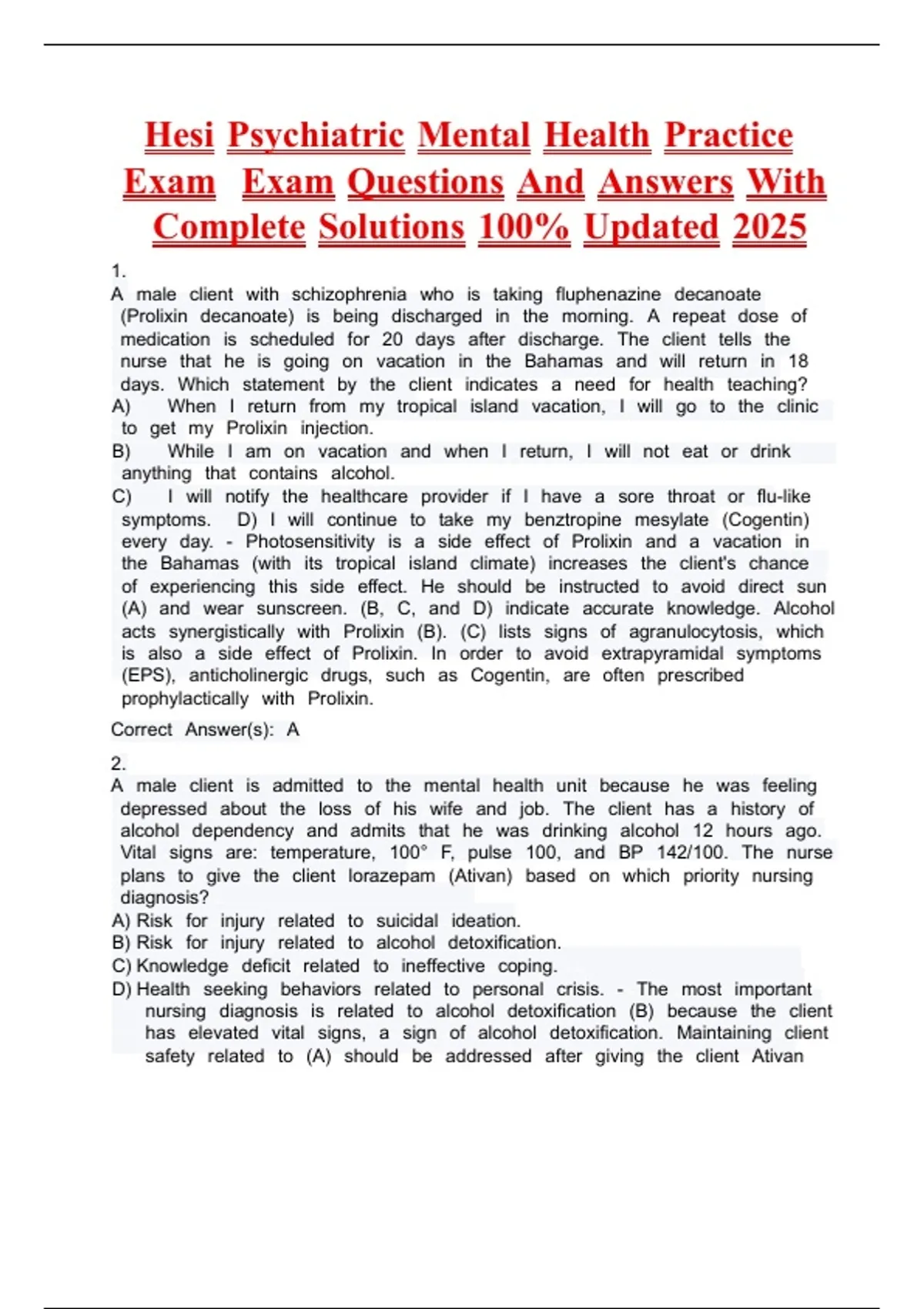 Complete Solutions 100% Updated 2025