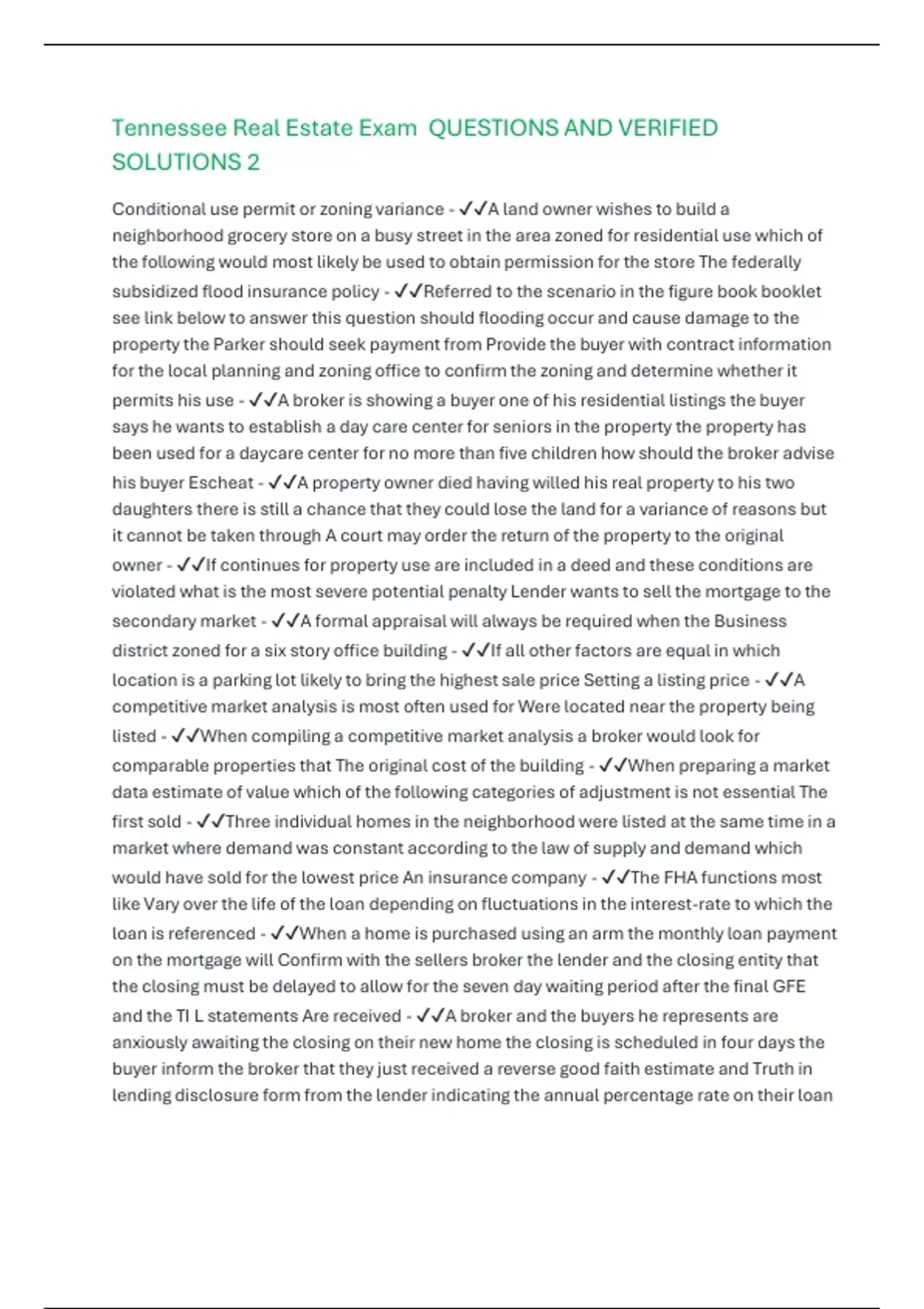 Tennessee Real Estate Exam QUESTIONS AND VERIFIED SOLUTIONS 2