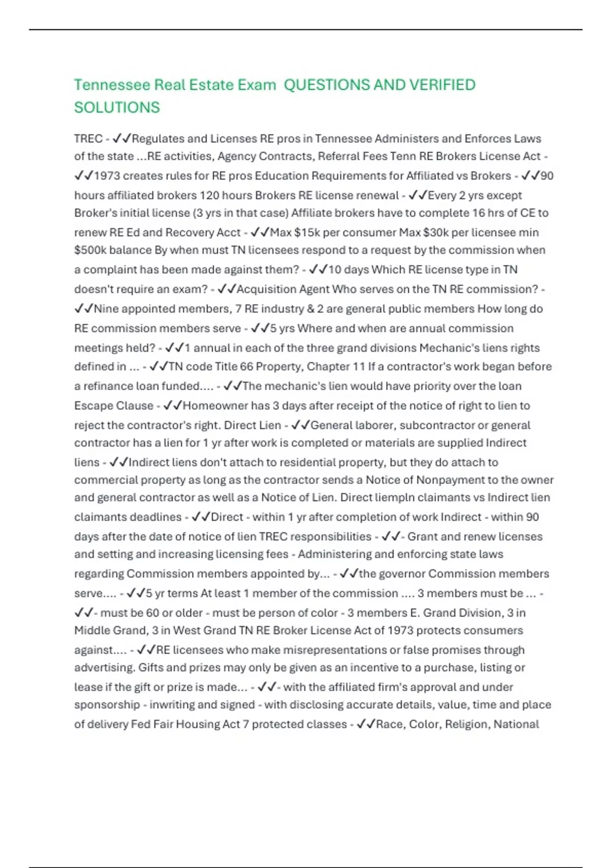 Tennessee Real Estate Exam QUESTIONS AND VERIFIED
