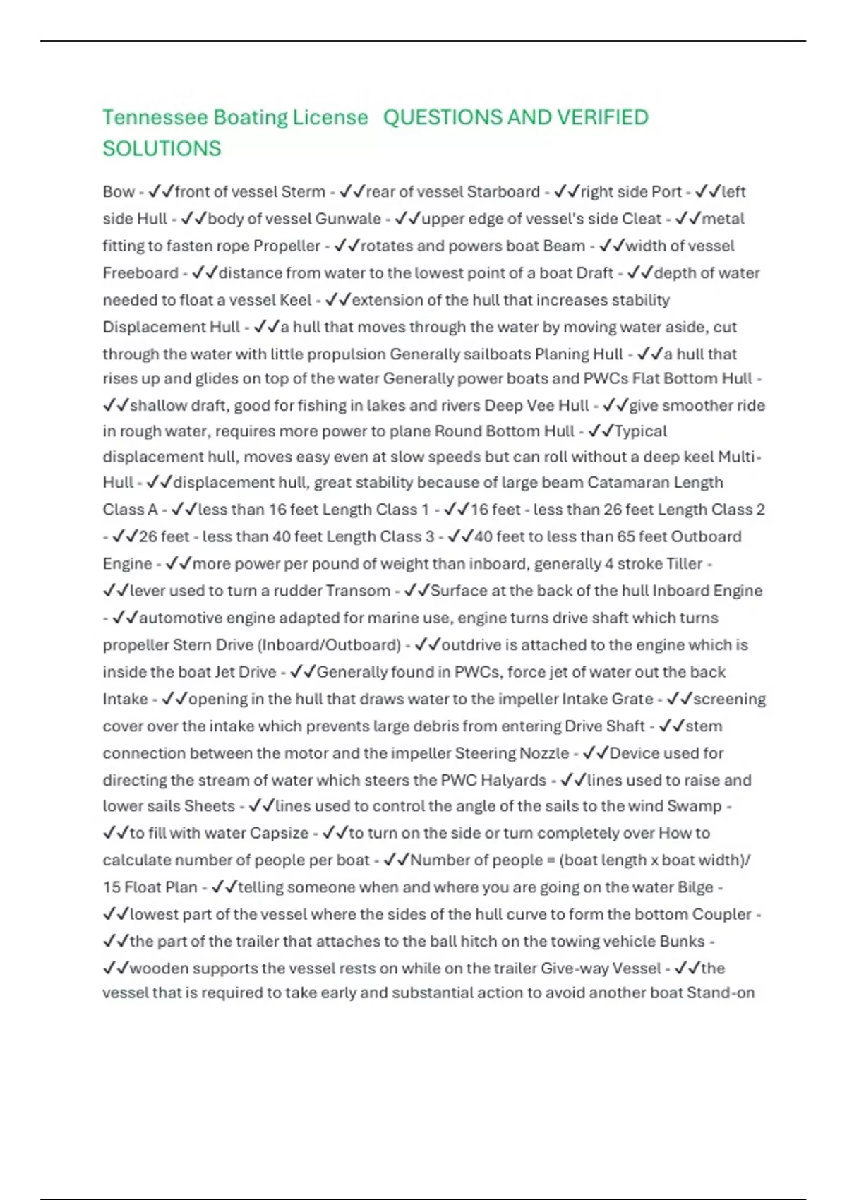 Tennessee Boating License QUESTIONS AND VERIFIED SOLUTIONS