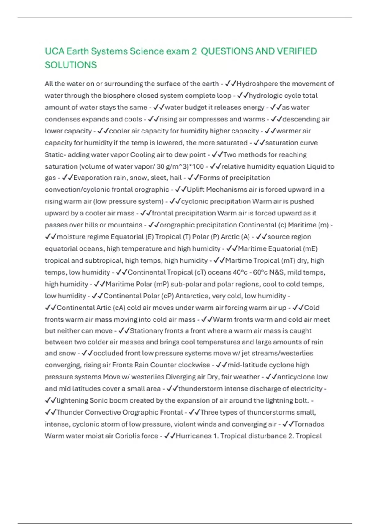 UCA Earth Systems Science exam 2 QUESTIONS AND VERIFIED