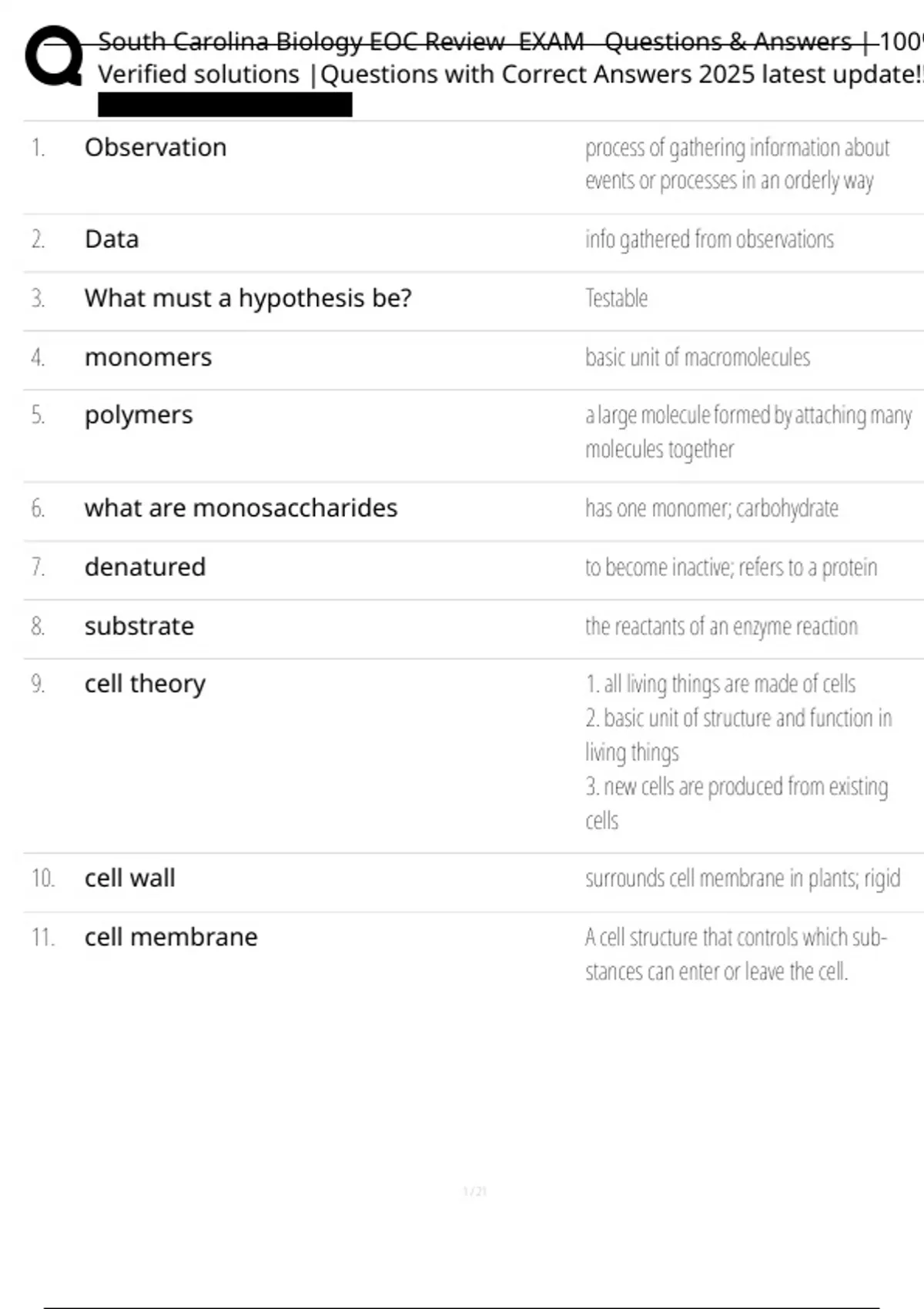 , South Carolina Biology EOC Review EXAM Questions & Answers | 100%