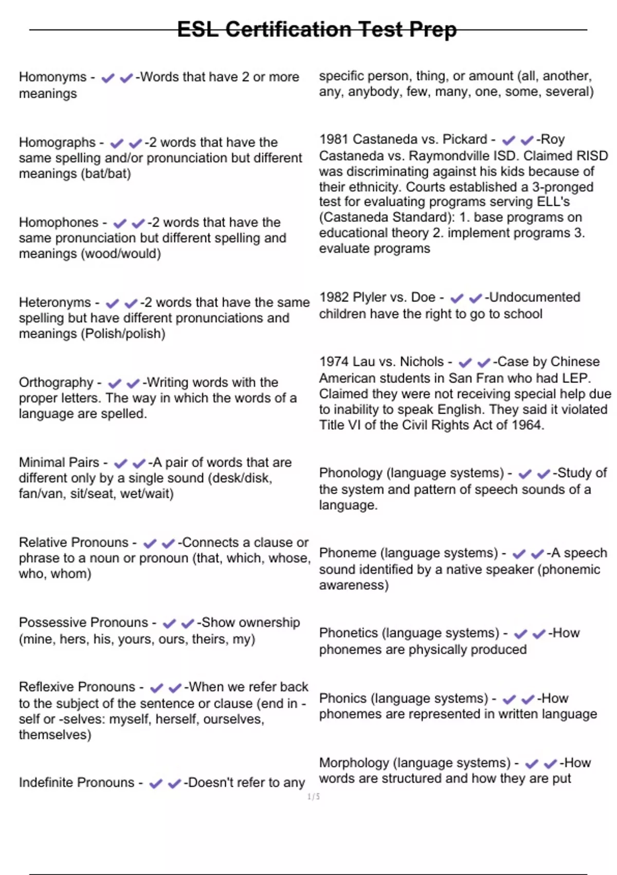 Heteronyms - -2 words that have the same 1982 Plyler vs. Doe - -Undocumented