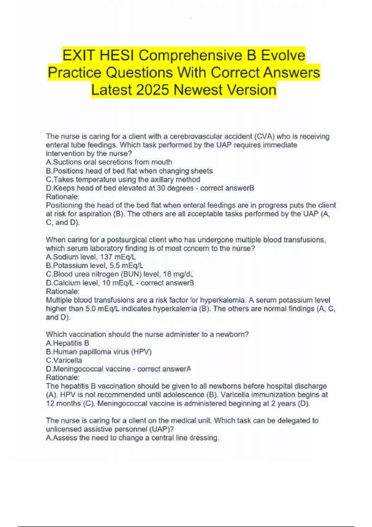 EXIT HESI Comprehensive B Evolve Practice Questions With Correct Answers Latest 2025 Newest Version EXIT HESI Comprehensive B Evolve Practice Questions With Correct Answers Latest 2025 Newest Version EXIT HESI Comprehensive B Evolve Practice Questions With Correct Answers Latest 2025 Newest Version EXIT HESI Comprehensive B Evolve Practice Questions With Correct Answers Latest 2025 Newest Version EXIT HESI Comprehensive B Evolve Practice Questions With Correct Answers Latest 2025 Newest Version
